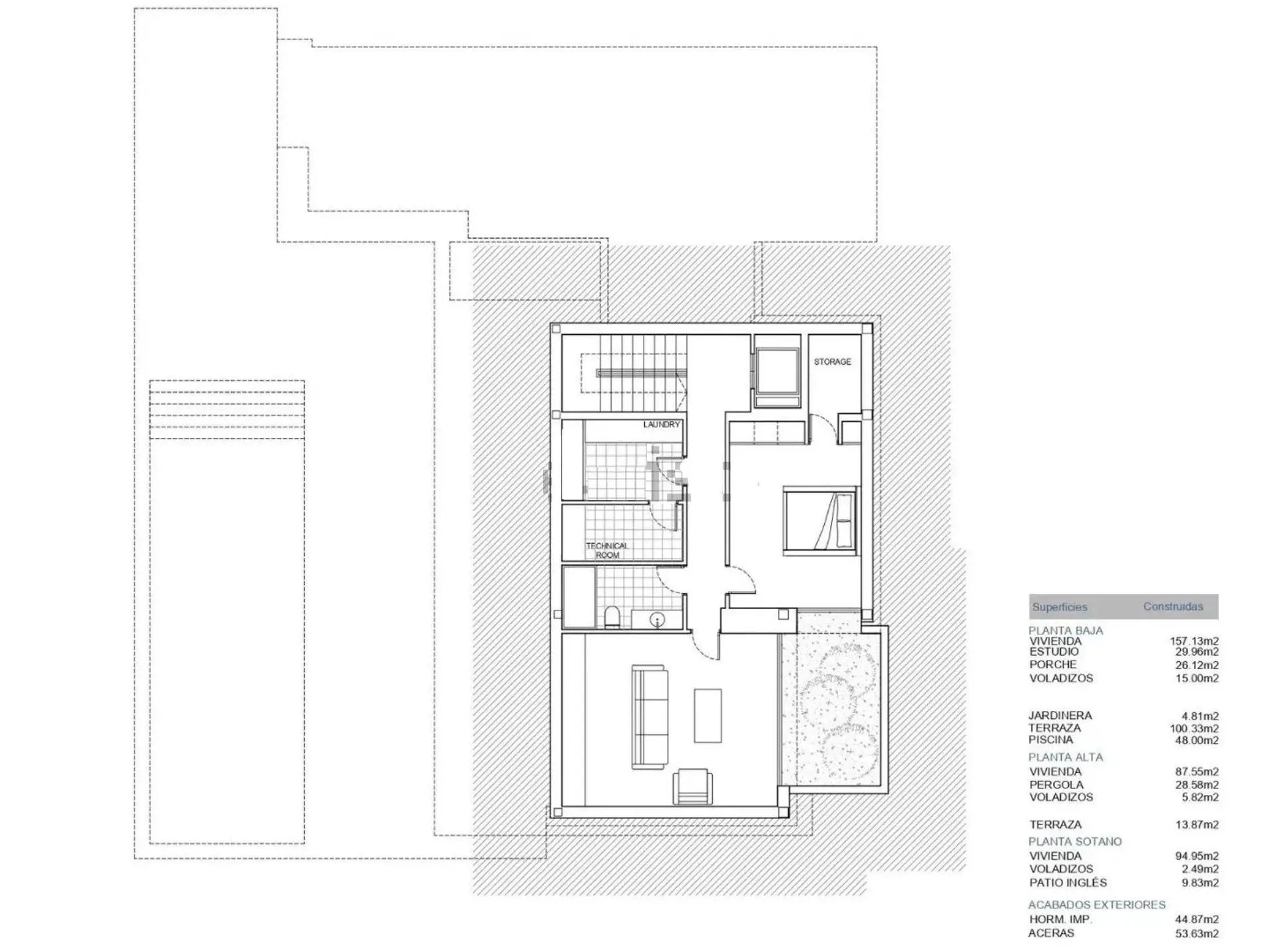 The interior of the villa has been designed with comfort in mind. With 4 spacious bedrooms, it’s ideal for families or hosting guests. The 3 bathrooms provide privacy and convenience. Porcelain tile floors add a modern touch and are easy to maintain, while built-in wardrobes optimize storage in each room. The garage ensures secure parking and additional space.