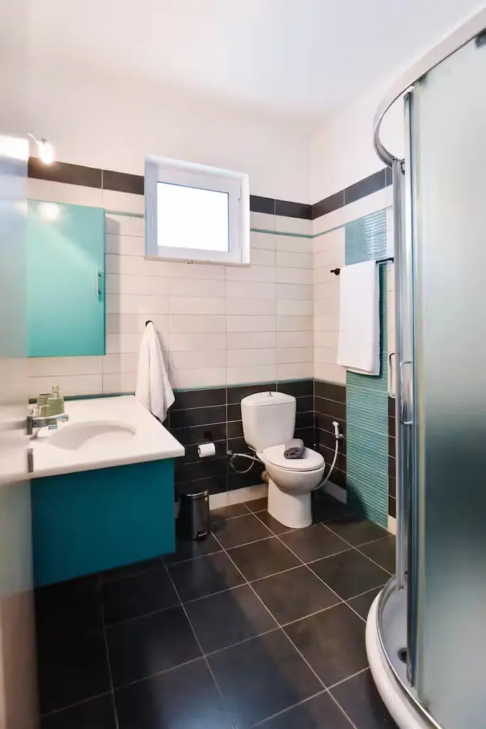 The ground floor features another bedroom, a living room, a kitchen, a shower WC, and an additional separate WC. This layout provides a convenient setup for daily activities and entertaining guests.