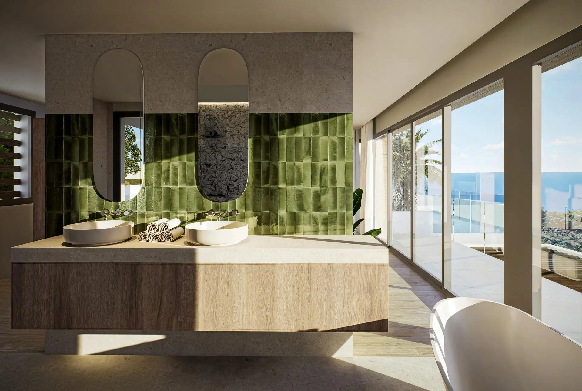 The exterior design of this villa encourages full enjoyment of the Mediterranean climate. The private garden is perfect for relaxing or engaging in outdoor activities, while the terrace becomes the best spot to contemplate the sea views and enjoy sunsets. A solarium provides total privacy for sunbathing, and the private pool adds a refreshing touch during the hottest days.