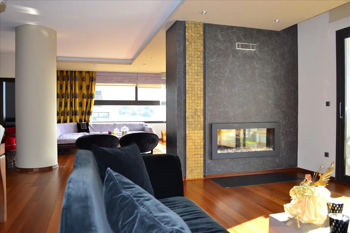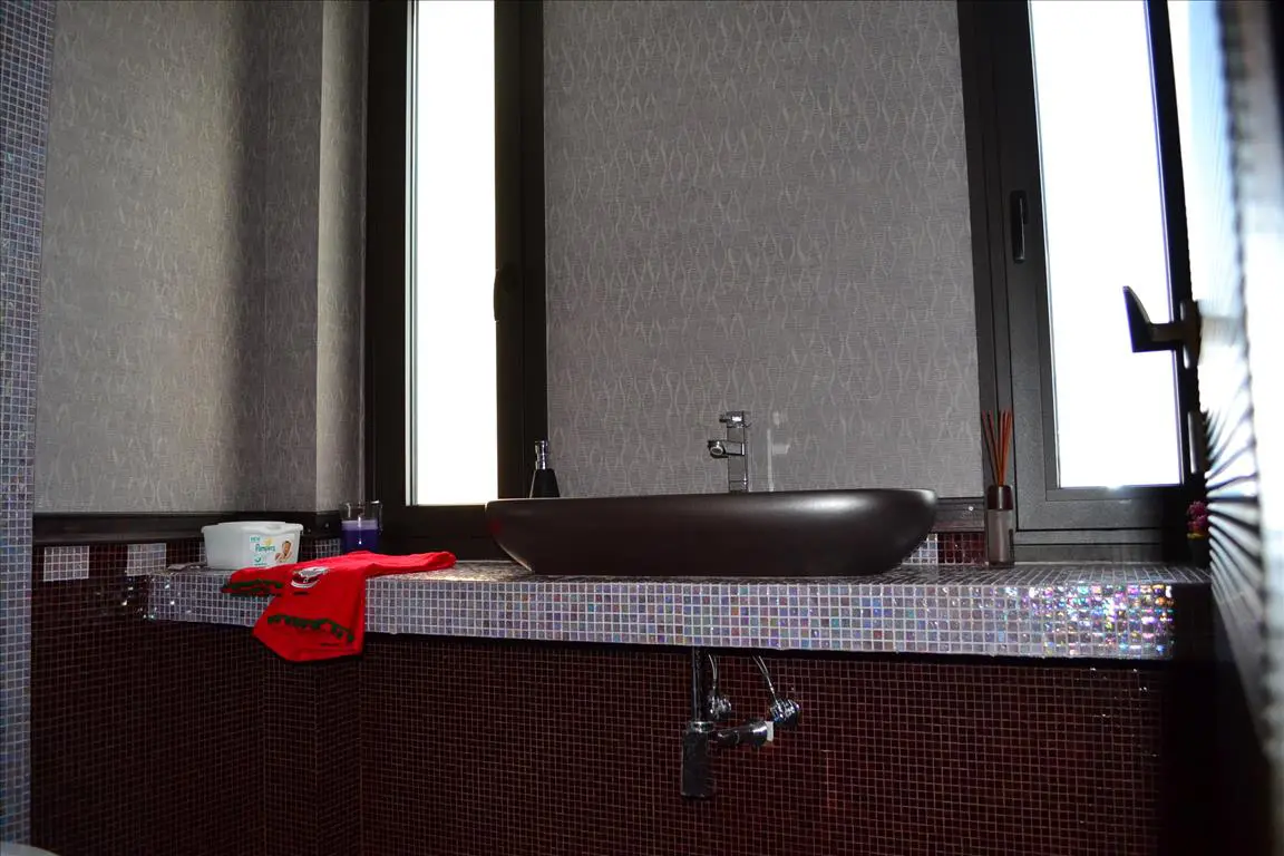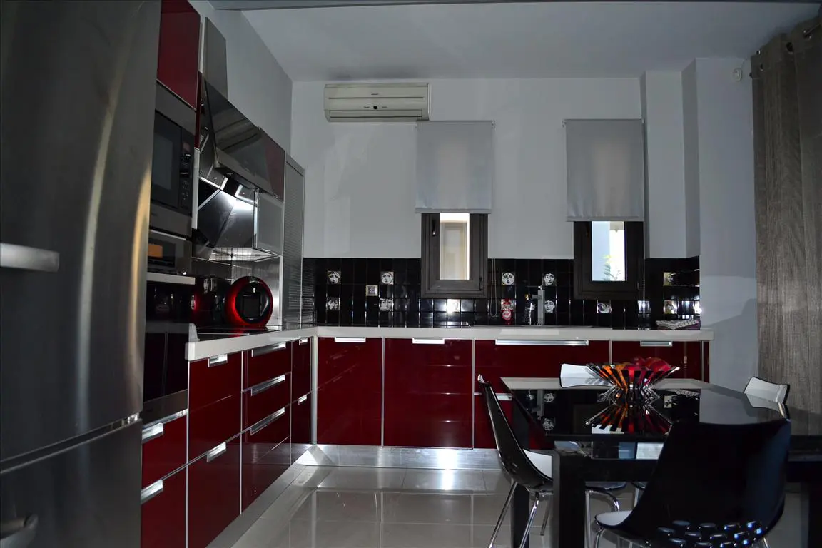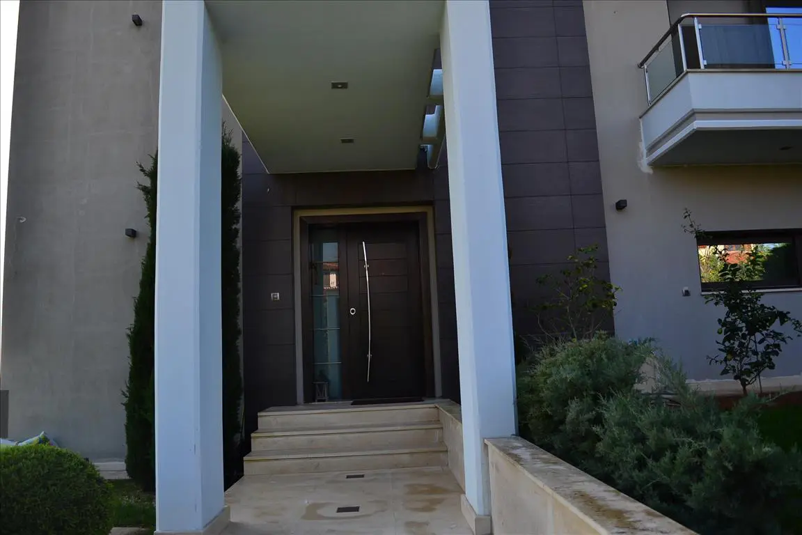 A 3-storey villa covering 420 square meters is available for sale in Thessaloniki. This property offers a notable view of the city, sea, and mountains from its windows. The villa is equipped with various features designed for convenience and functionality.