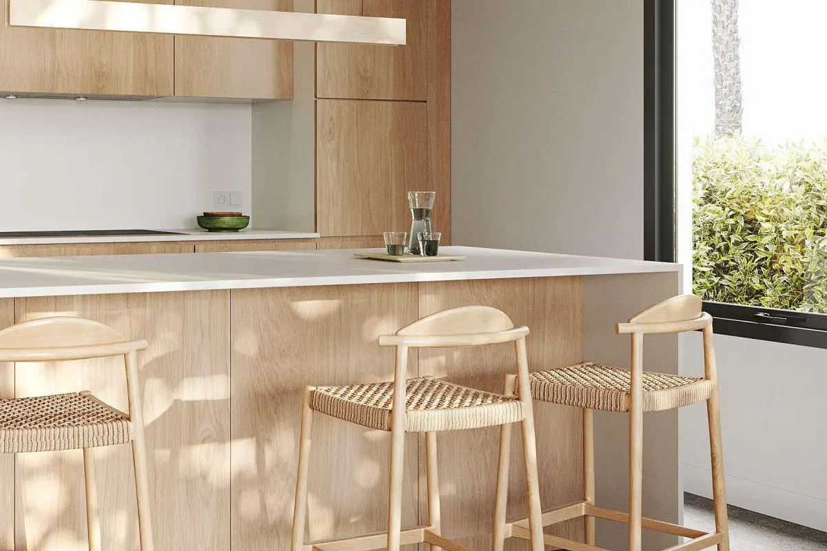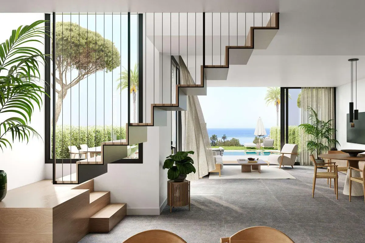 The design follows the principle of “Less is more,” focusing on clean lines and a refined aesthetic. Materials such as natural wood are intentionally incorporated to strengthen the link with the environment, lending warmth and a unique quality to the project. This thoughtful material selection enhances the overall connection to the natural setting.