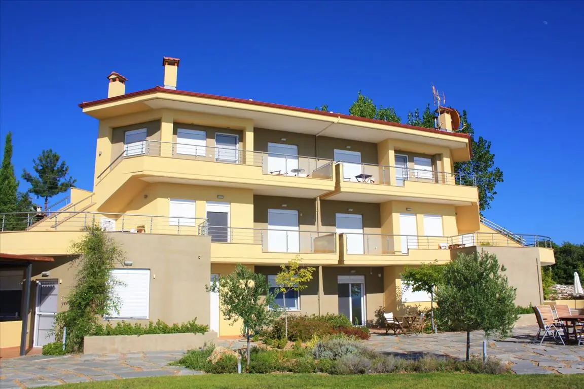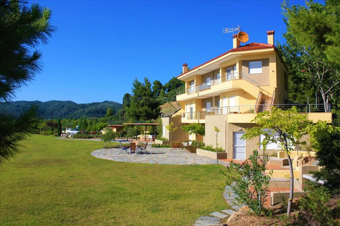 If you are looking for a spacious property in Chalkidiki, this three-storey villa may be worth considering. Sitting at 450 square meters, this villa offers ample space for living arrangements, featuring numerous bedrooms and living areas across its three floors.