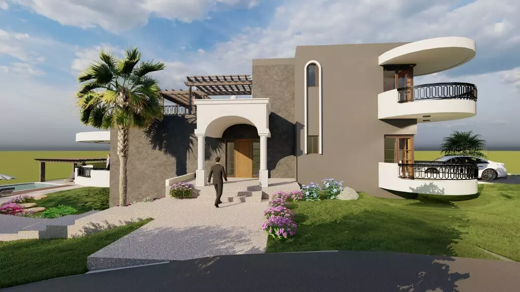 This under-construction villa on the island of Corfu spans an area of 466 square meters. Positioned to offer a mountain view, the property’s design integrates natural landscapes into everyday living.