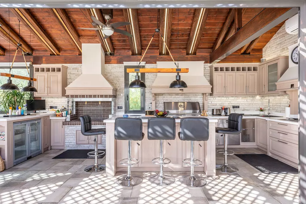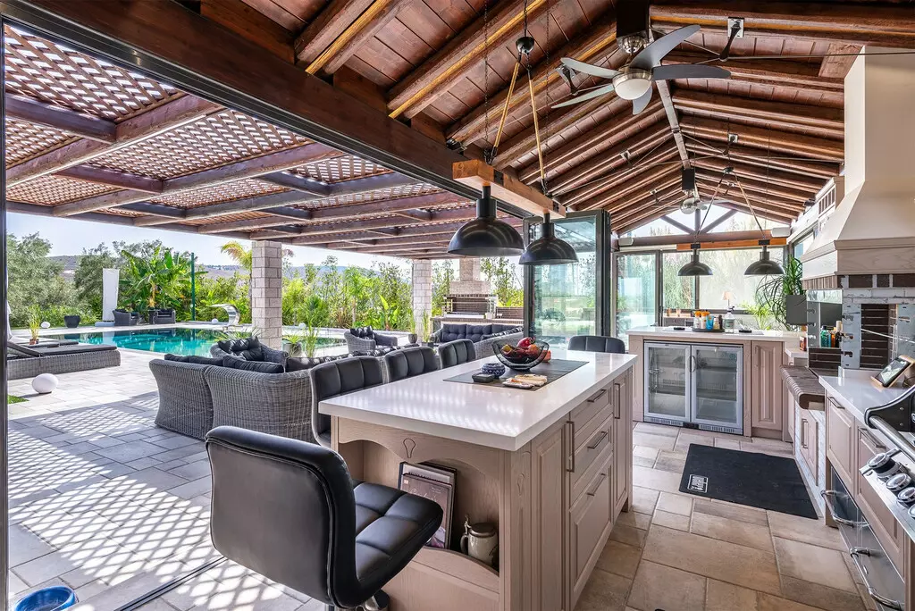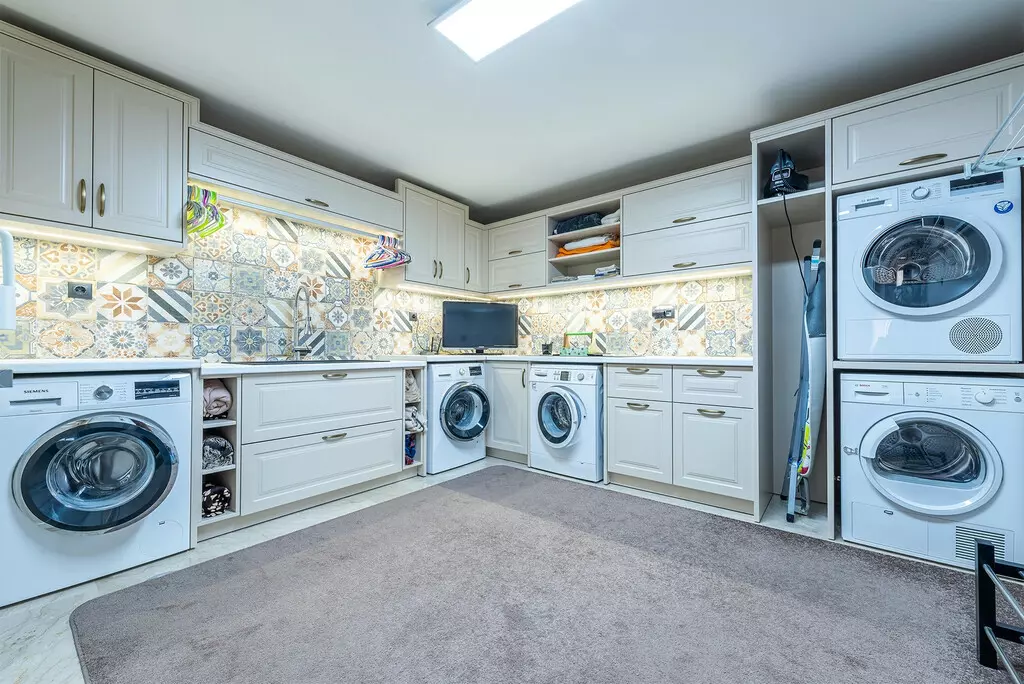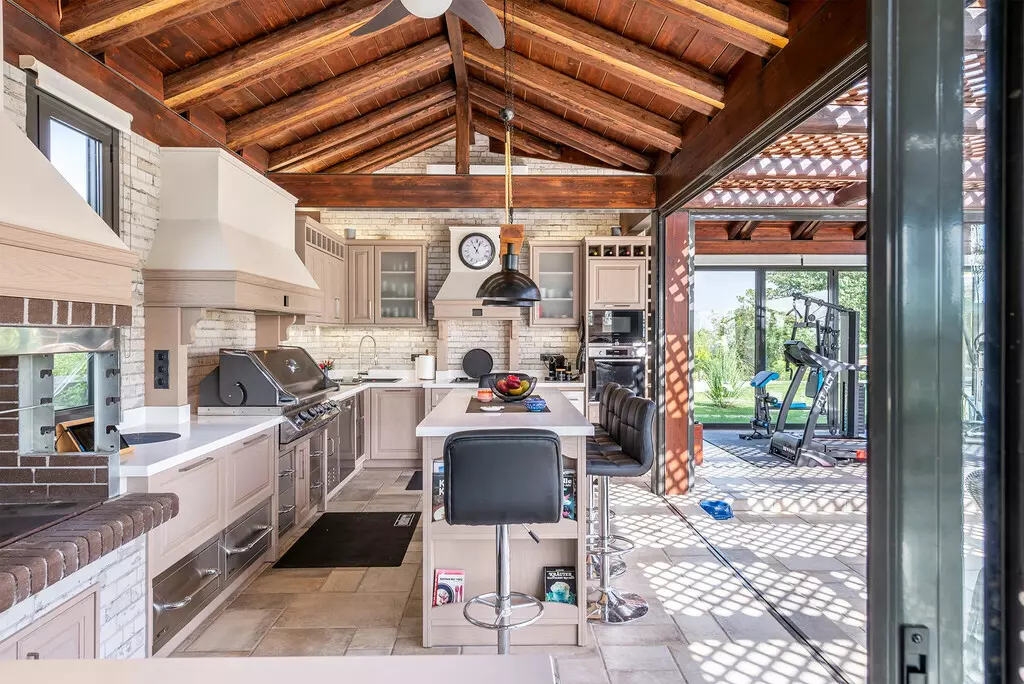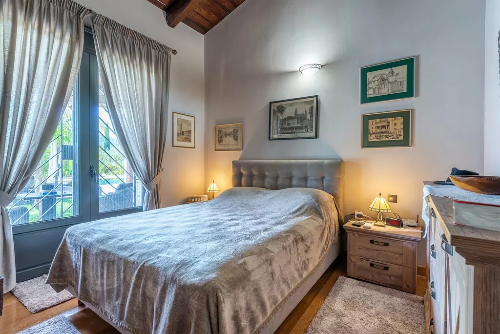This villa is equipped with a range of amenities for practical living. Additional rooms include an office, a gym, and a storeroom, providing flexibility for various lifestyle requirements. The villa also boasts a hot tub, adding to its appeal as a recreational space.