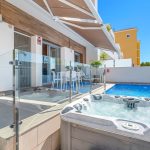 9,480 m2. fully fenced property with 495 m2. house built on a plot of 1,000 m2. all fenced within the perimeter of the property. The house is composed of three floors: – SEMI-BASEMENT FLOOR: 224 m2. Constructed Garage for several vehicles, gym with shower, entertainment area, DIY area with shelves and bench, a bedroom, and a dressing room-shoe closet. – GROUND FLOOR: 178 m2. Constructed Distributed in large living room, large kitchen with access to an outdoor barbecue area, separate pantry, laundry area with access to an outdoor terrace, 1 bathroom with shower, 1 bedroom with built-in closet and an office-room with access to an outdoor terrace. – SECOND FLOOR: 93 m2. Constructed Distributed in a lookout area to the living room downstairs, master bedroom with balcony, bathroom with whirlpool tub and dressing room, 2 more bedrooms (one with built-in closet) and an extra bathroom with bathtub. AMENITIES Central heating with boiler with water radiators and air conditioning ducts both throughout the house. Outdoor shed with air conditioning engines, heating boiler and gas-oil tank for maintenance. Grilles on all doors and windows with mosquito nets. Installation of Fiber Optic Internet. Building with access from the kitchen for a barbecue area with sink and oven. Swimming pool and garden with outdoors lighting. Access gates to the property and garage with motorized doors. The house is surrounded with a planted land with lemon verna in production and with traditional method of irrigation. PROPERTY LOCATION The property is in a quiet area, 5 minutes from the Carrefour shopping center and town center of Orihuela and Bigastro with good access by road and well connected to both towns. The house is surrounded by residential homes of similar characteristics, and it has an easy access by road and in its surroundings where you can find supermarkets, restaurants, and all necessary services.