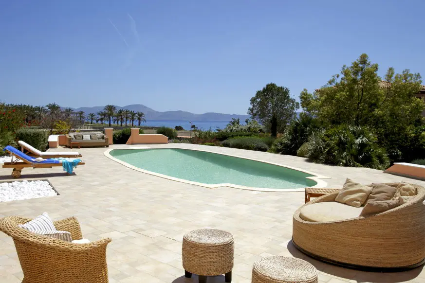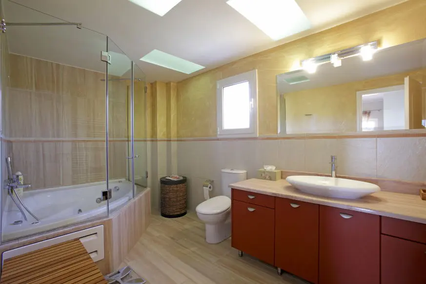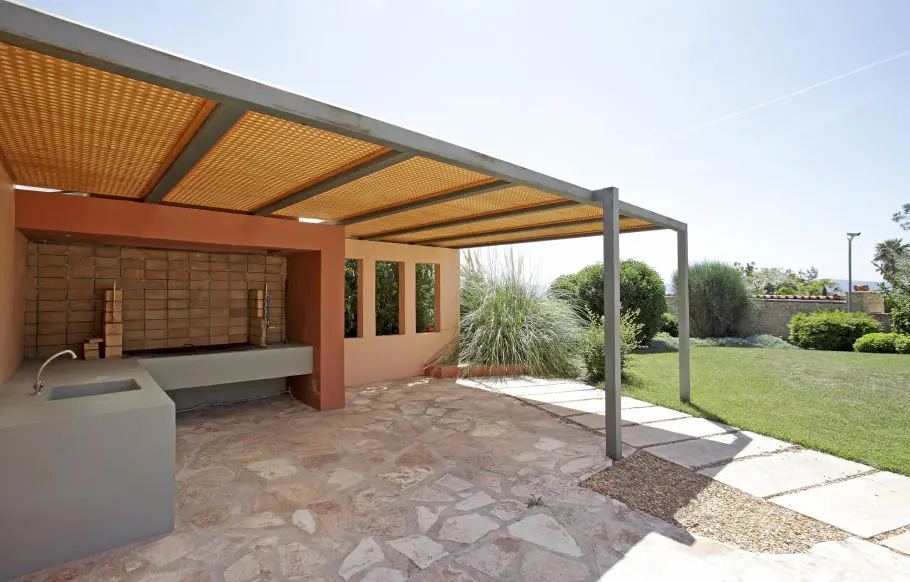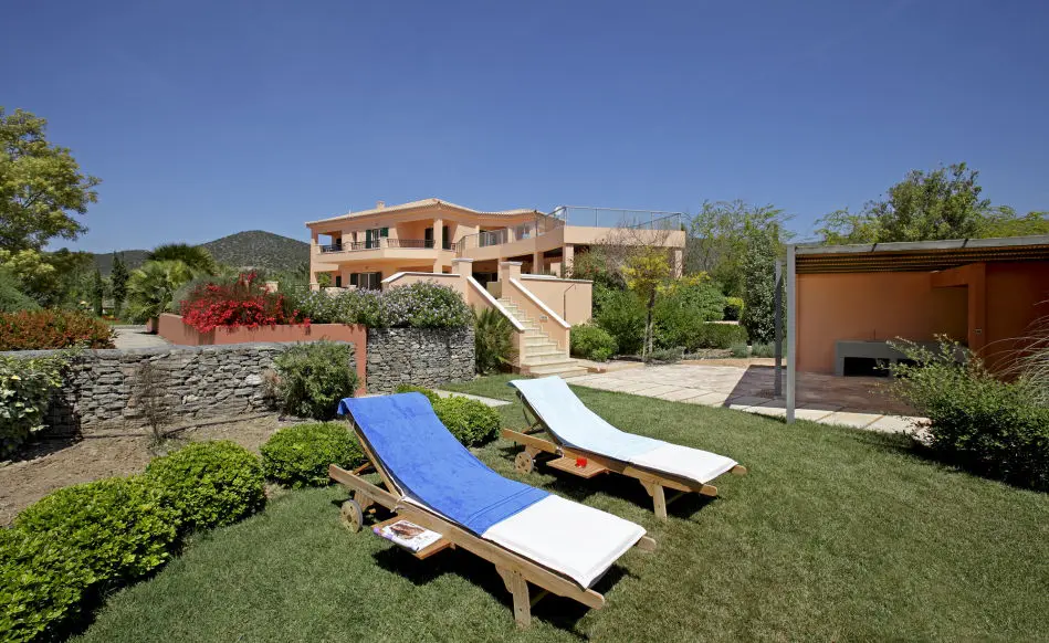 This villa provides stunning views of both the sea and the mountains, visible from various windows throughout the property. Key features include solar panels for water heating, a fireplace, and air conditioning for year-round comfort. Additionally, awnings and heating systems are installed for added convenience.
