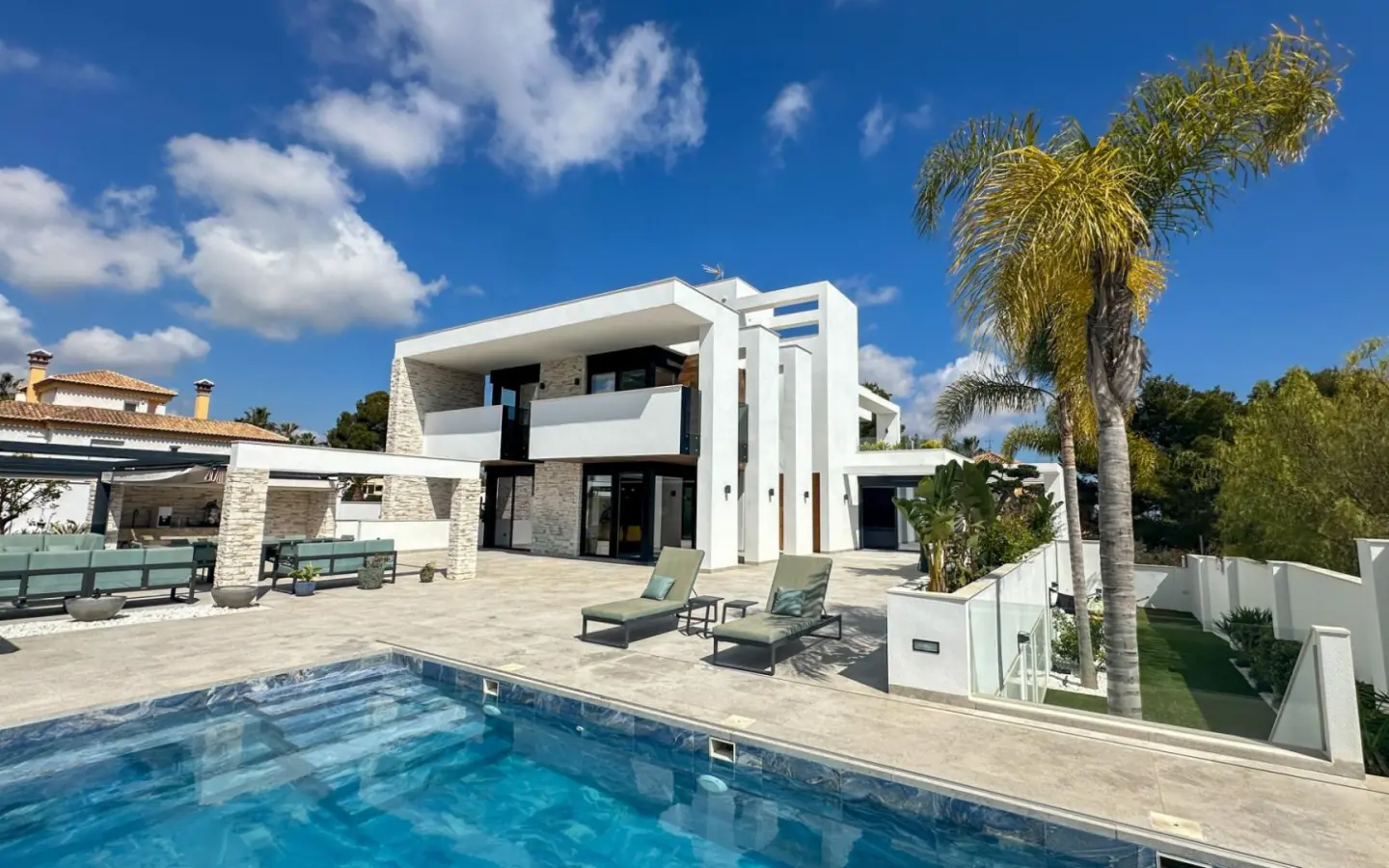 Nestled in the vibrant Orihuela Costa, this villa offers an exceptional living experience, perfectly positioned for those who appreciate both leisure and convenience. You’re just a stone’s throw from the prestigious Villamartín Golf Club, meaning your next round is always within easy reach. The surrounding area is a hub of activity, featuring a selection of quality restaurants, inviting bars, and a variety of shops offering premium goods and boutique finds. For those who love the sun and sand, the famous beaches of the Costa Blanca are a mere five minutes away, as is the popular La Zenia Boulevard shopping center. And for international travelers, getting to and from your new home is straightforward, with excellent connections to both Alicante–Elche Miguel Hernández Airport and Region of Murcia International Airport.