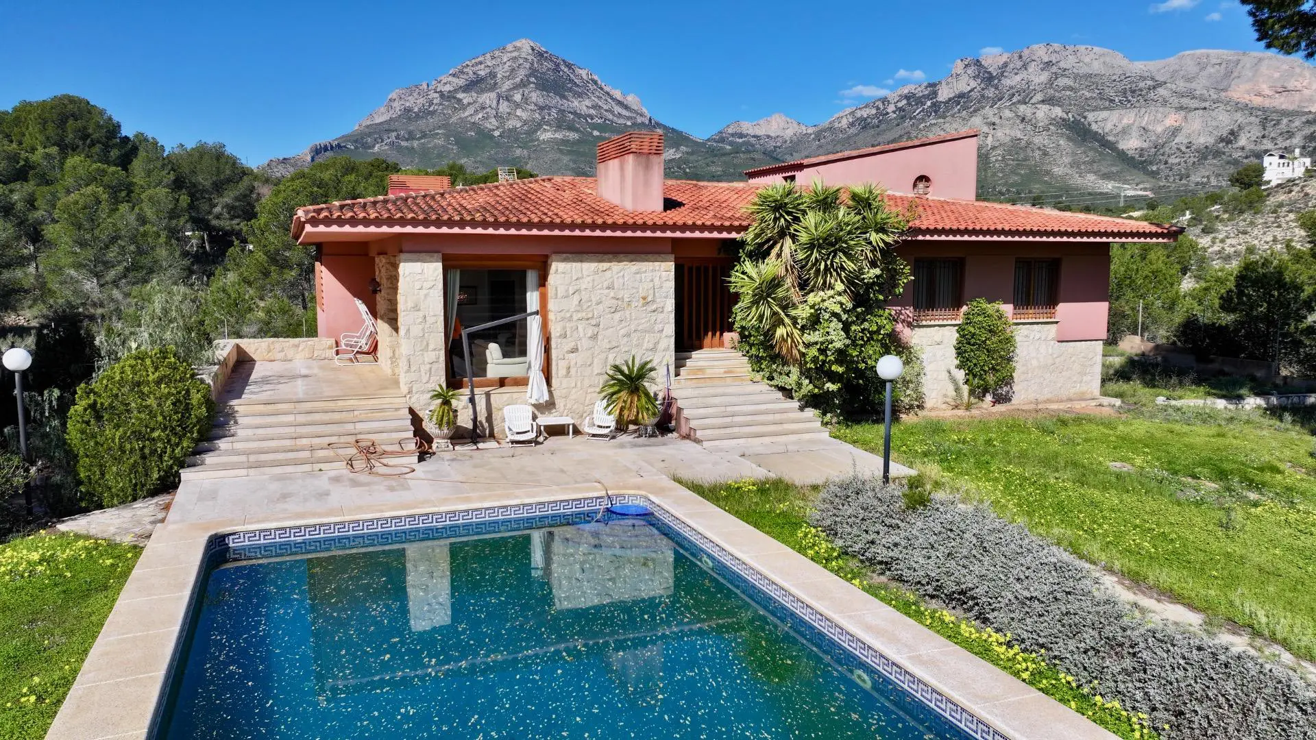 The house is situated on a substantial plot of land, which includes a private swimming pool. This outdoor amenity is a key feature of the property and is well-suited for use during the warmer months.