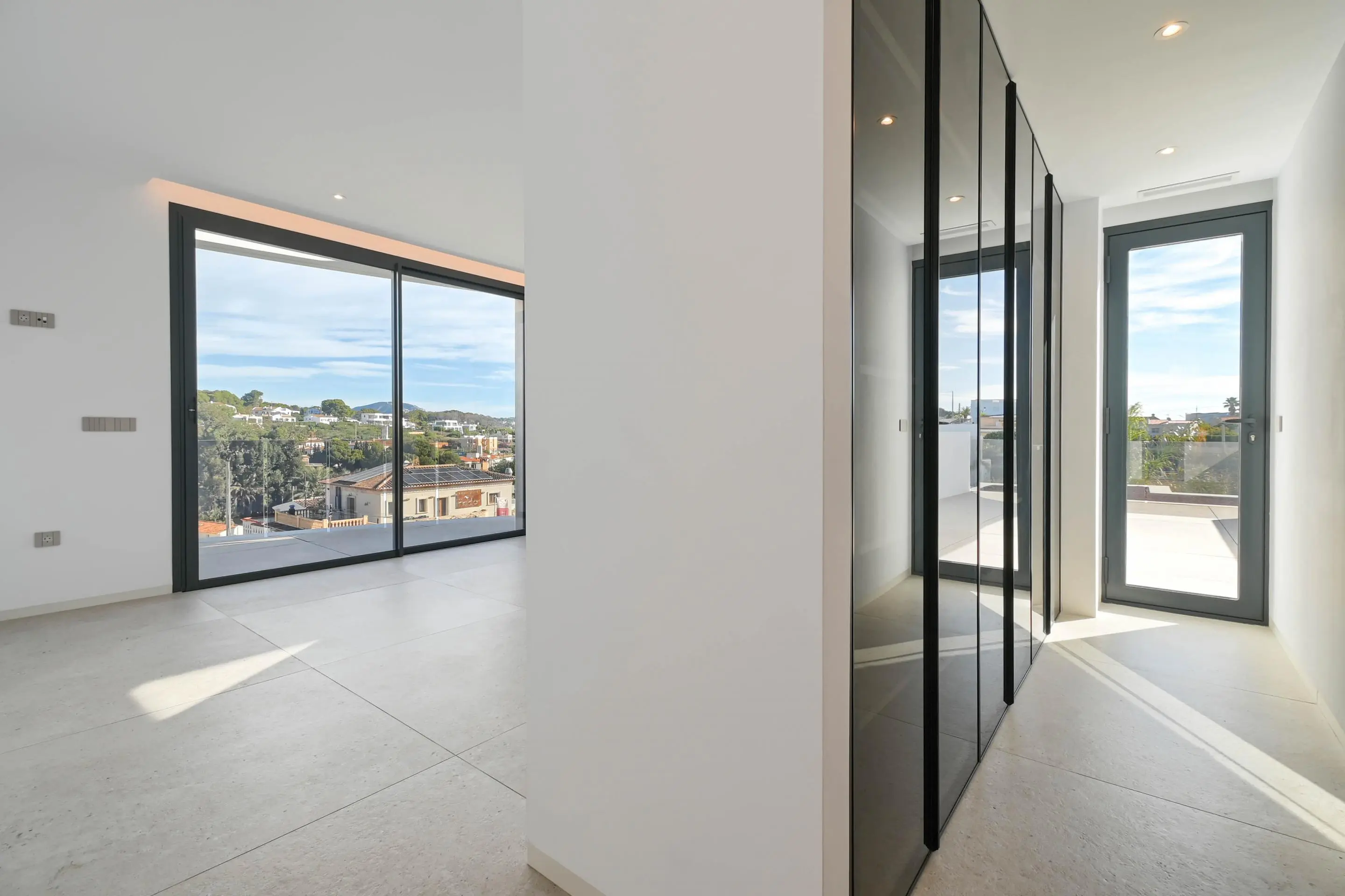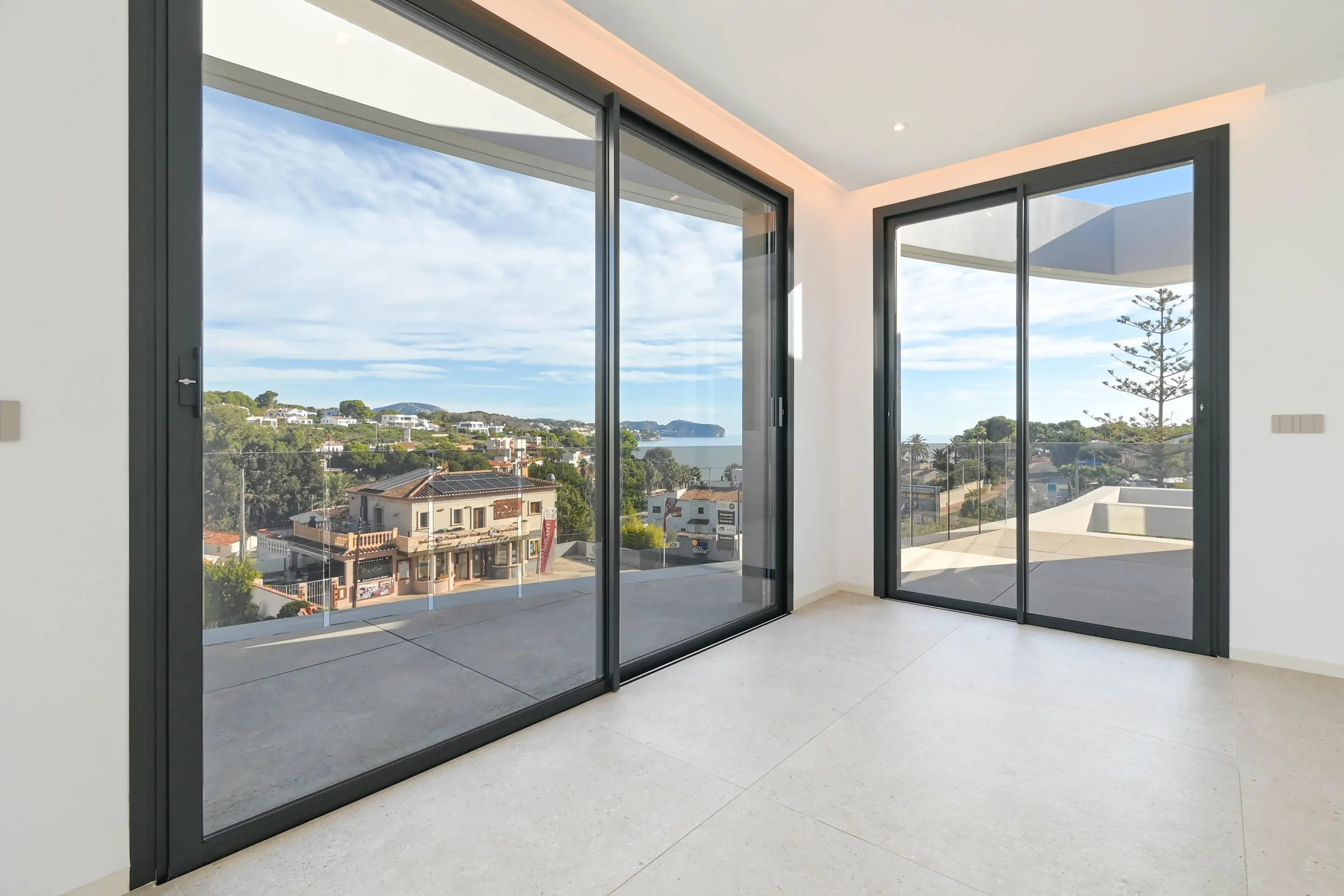 The exterior design of the villa is intended to fully enjoy the Mediterranean climate. A private garden offers a green space perfect for relaxing or engaging in outdoor activities. The terrace becomes the perfect spot to gaze at the sea views while enjoying a meal or simply relaxing in the sun. Additionally, it features a private pool that provides a refreshing escape during the hot summer days. The private garage ensures comfortable and secure access for your vehicles.