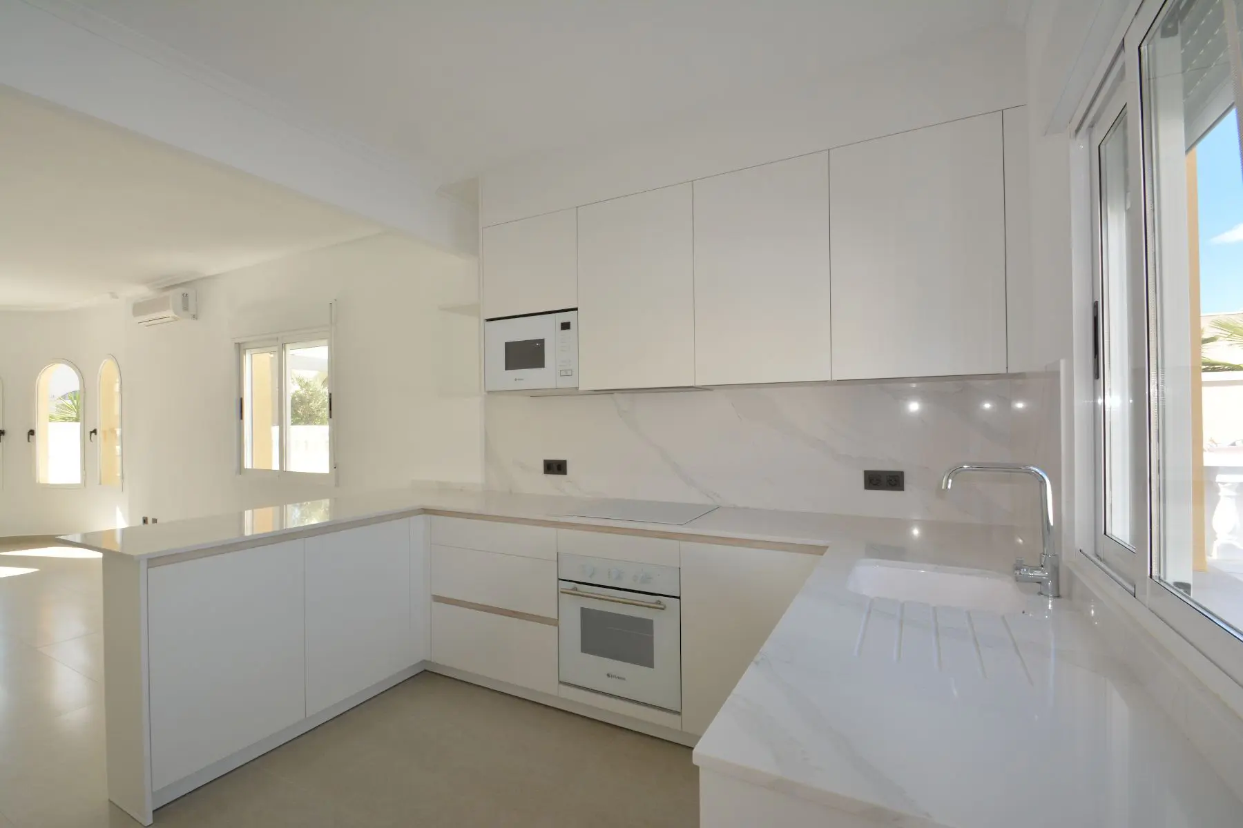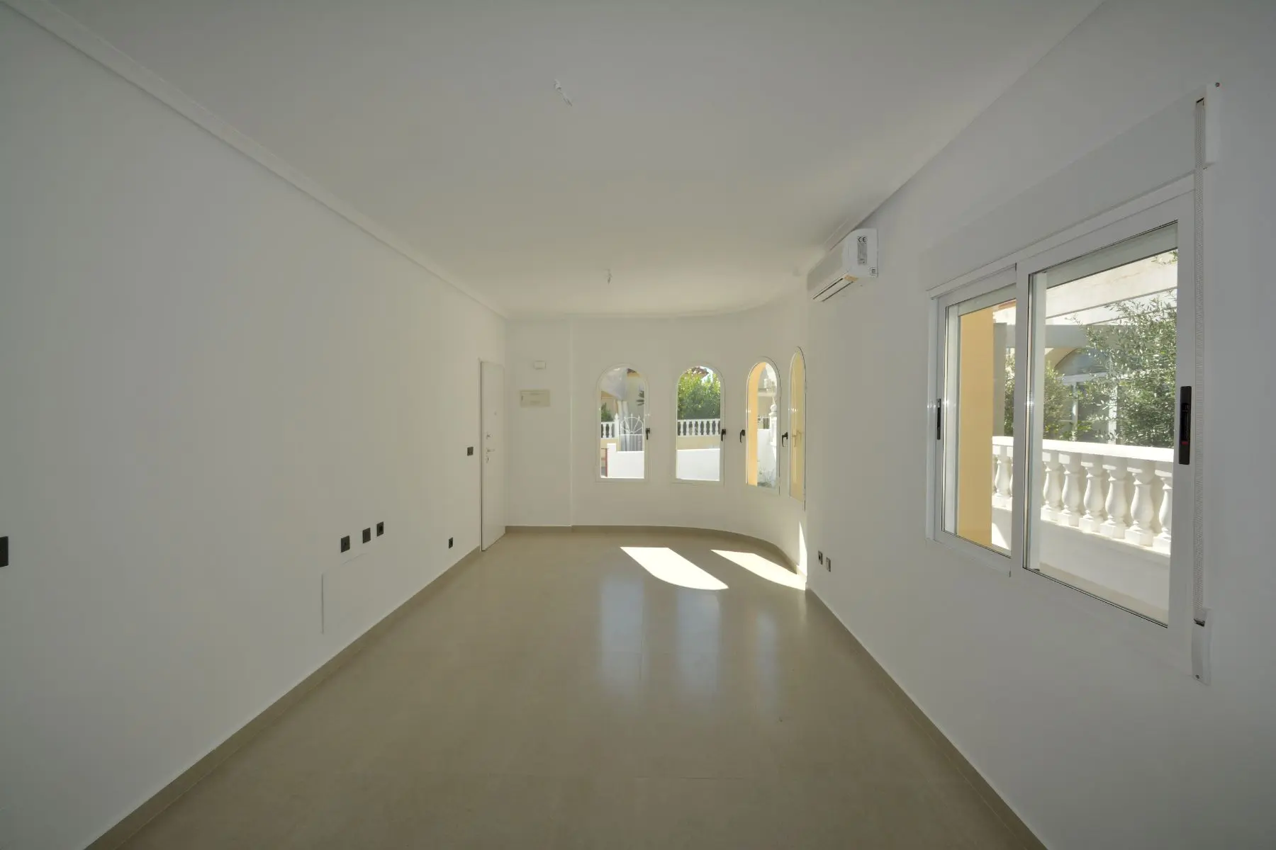 The house has been fully renovated, featuring new fitted wardrobes, new interior doors, new flooring, and fresh paint both inside and outside. The exterior area has been recovered in concrete, providing low maintenance and a clean, modern look.