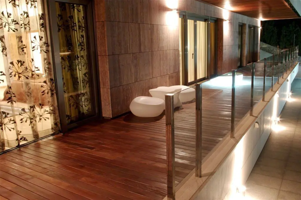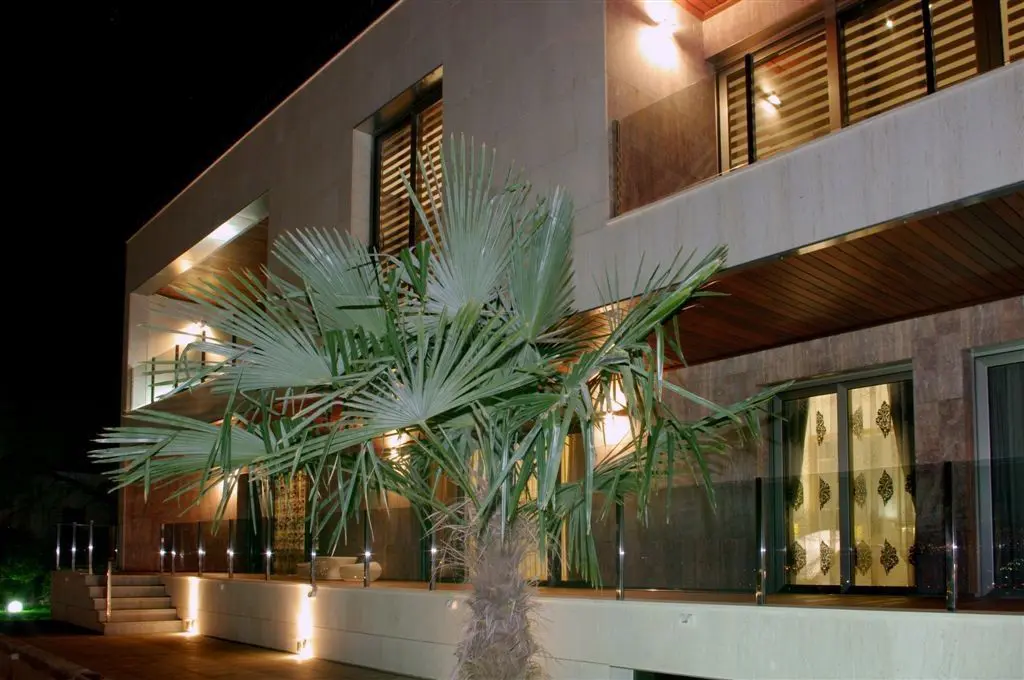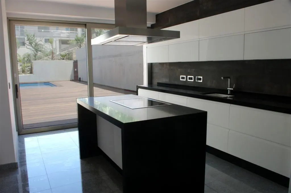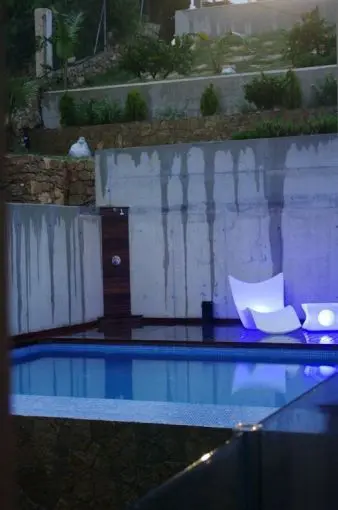 The villa features a spacious living-dining room of 90 m2 with direct access to the pool and the garden. The kitchen is designed and equipped with high-quality materials and appliances, with access to the laundry room. There are a total of five bedrooms, including a master suite with a dressing room and a hydromassage bathtub. In addition, there are four more complete bathrooms.