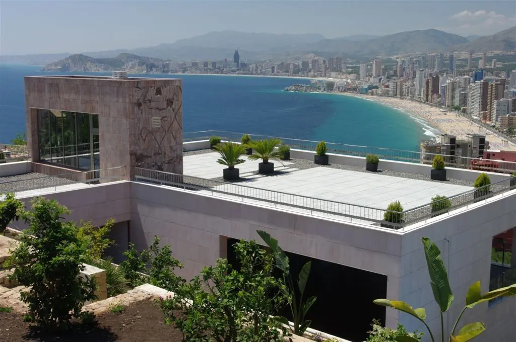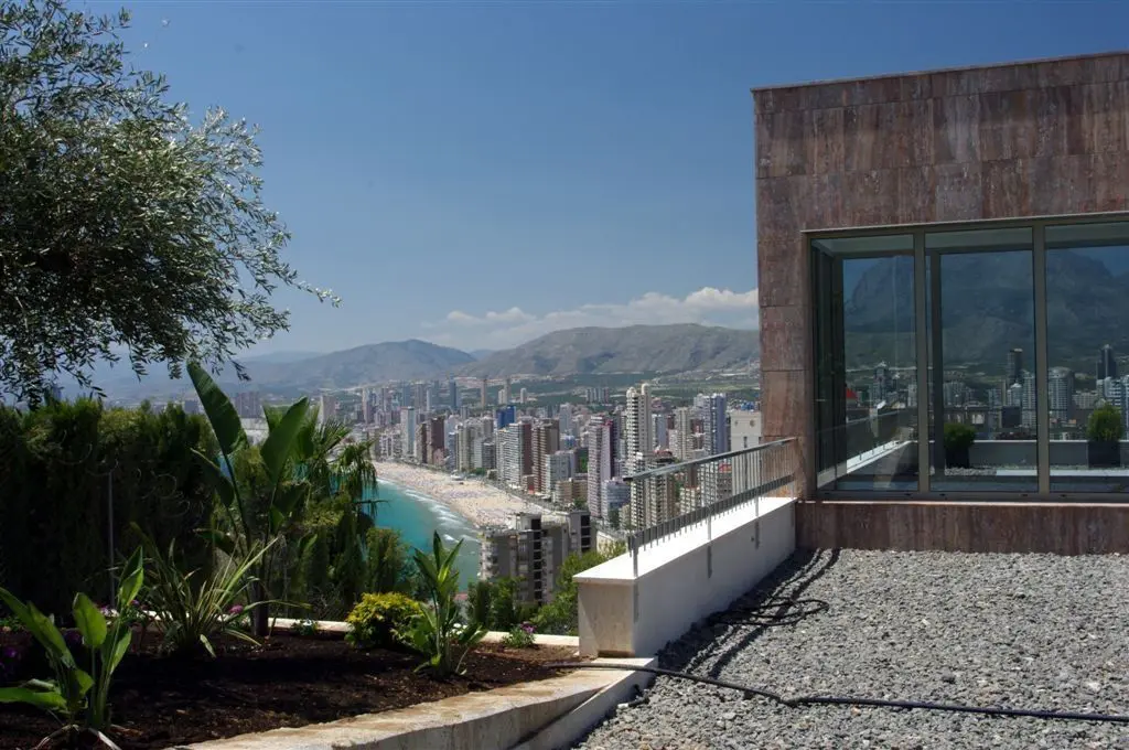 Remax presents this villa in Benidorm, located in the Rincón de Loix area, with spectacular views of the sea, mountains, and city. The plot measures 1,000 m2, and the constructed area is 700 m2 distributed over four floors connected by stairs and an elevator.