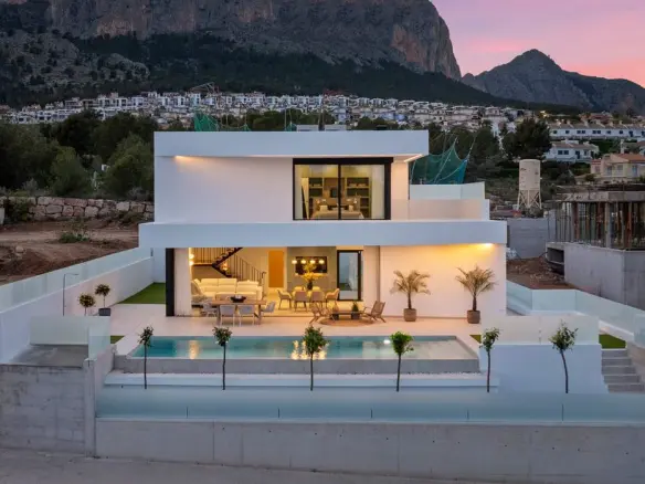 Nestled in the esteemed Cumbre del Sol area, this villa stands out as a notable property offering remarkable sea views. Situated a mere 0.5 kilometers from the coastline, its position provides excellent access to the beaches of Alicante. The design aims to combine a high standard of living with comfort, making it a suitable choice for individuals looking for a beachfront residence.
