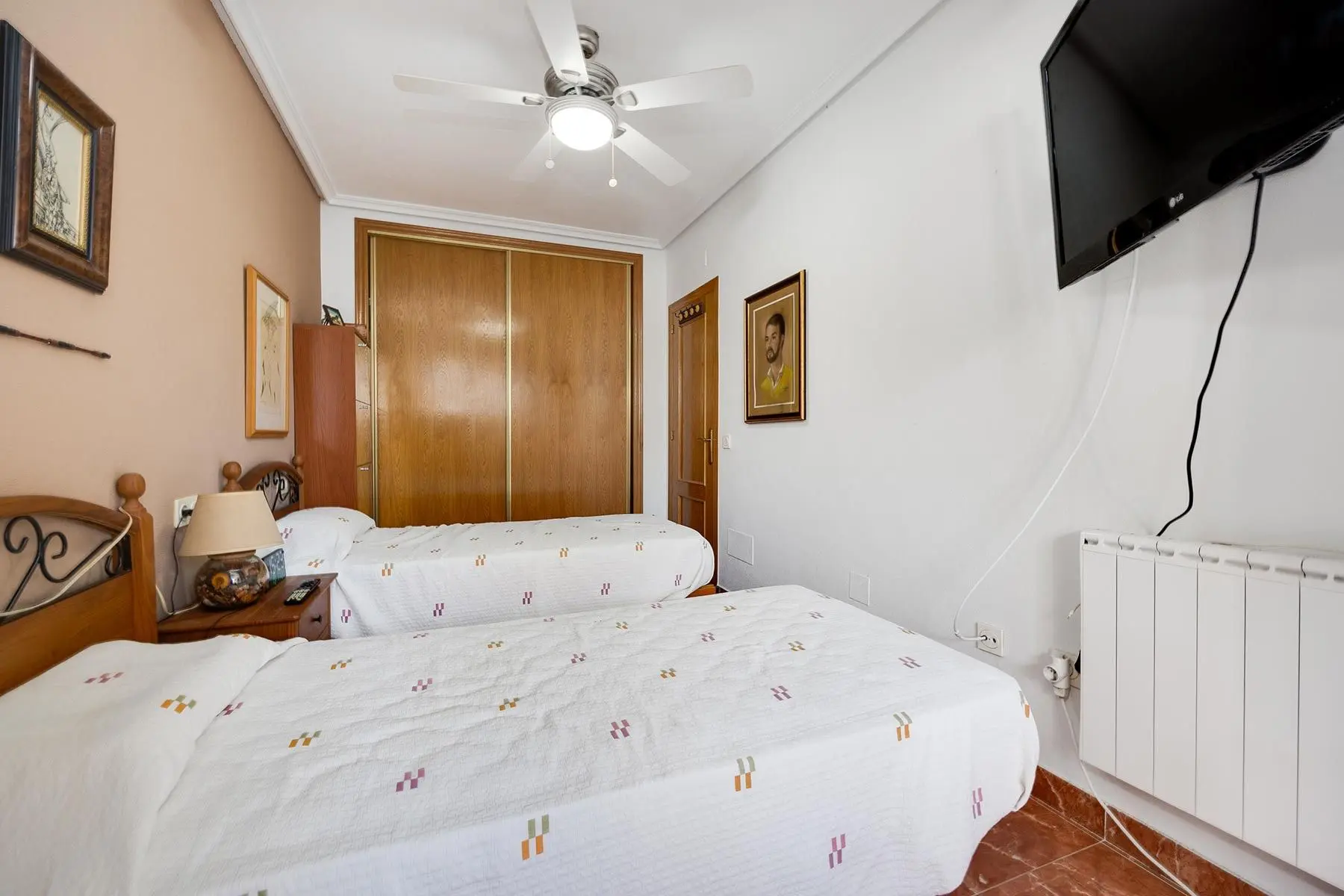 Discover this spacious townhouse in Orihuela Costa, located in one of the most sought-after areas of the Costa Blanca, just steps from the well-known La Zenia Boulevard and surrounded by all essential day-to-day services. A perfect setting to enjoy the Mediterranean lifestyle, with exceptional weather, proximity to the sea and conveniences within walking distance. The property, distributed over three floors, offers 4 bedrooms and 2 bathrooms, creating a comfortable and functional space for the whole family. It features a private plot with parking area, as well as an excellent south orientation that provides natural light throughout the day. It is sold fully furnished and equipped with air conditioning, ready to move into. The residential also offers a communal swimming pool, ideal for cooling off in summer and enjoying moments of leisure and relaxation in a peaceful and well-maintained environment. Located very close to La Zenia and Playa Flamenca beaches, as well as several prestigious golf courses such as Villamartín, Las Ramblas and Campoamor, this townhouse boasts an unbeatable location. Alicante International Airport is less than 45 minutes away, offering excellent connections across Europe. A unique opportunity for those seeking quality of life, comfort and an exceptional location in Orihuela Costa. Contact us today for more information or to arrange a visit.