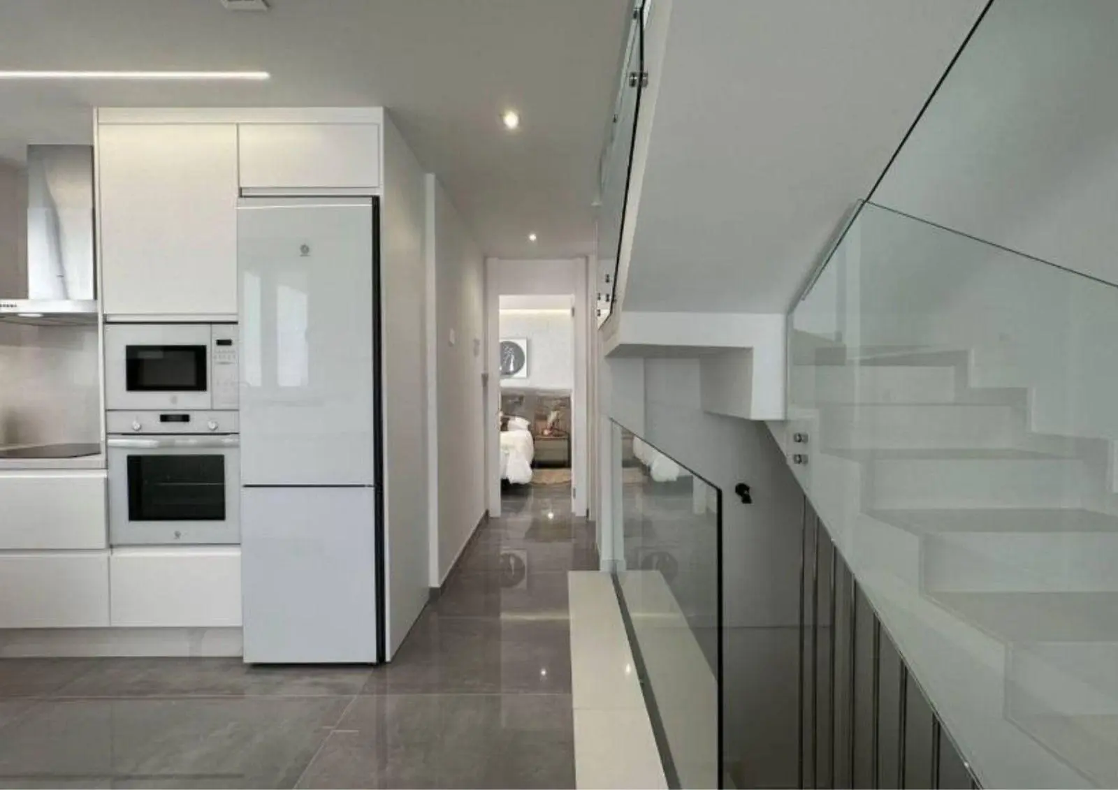We present this bright penthouse located in the quiet urbanization of Torreblanca in Torrevieja. This area offers its residents and visitors privileged access to the beautiful beaches in the area. There are a variety of services and amenities, including shops, restaurants, parks, health center, which make it a comfortable and self-sufficient area to live in. The house has two bedrooms, a large dining room-kitchen, a bathroom, a toilet, a communal pool and a wonderful solarium with barbecue, where you can enjoy panoramic views. It is also possible to rent a parking space in the car park that is located on the same premises. Shall we schedule a visit? Contact us for more information.
