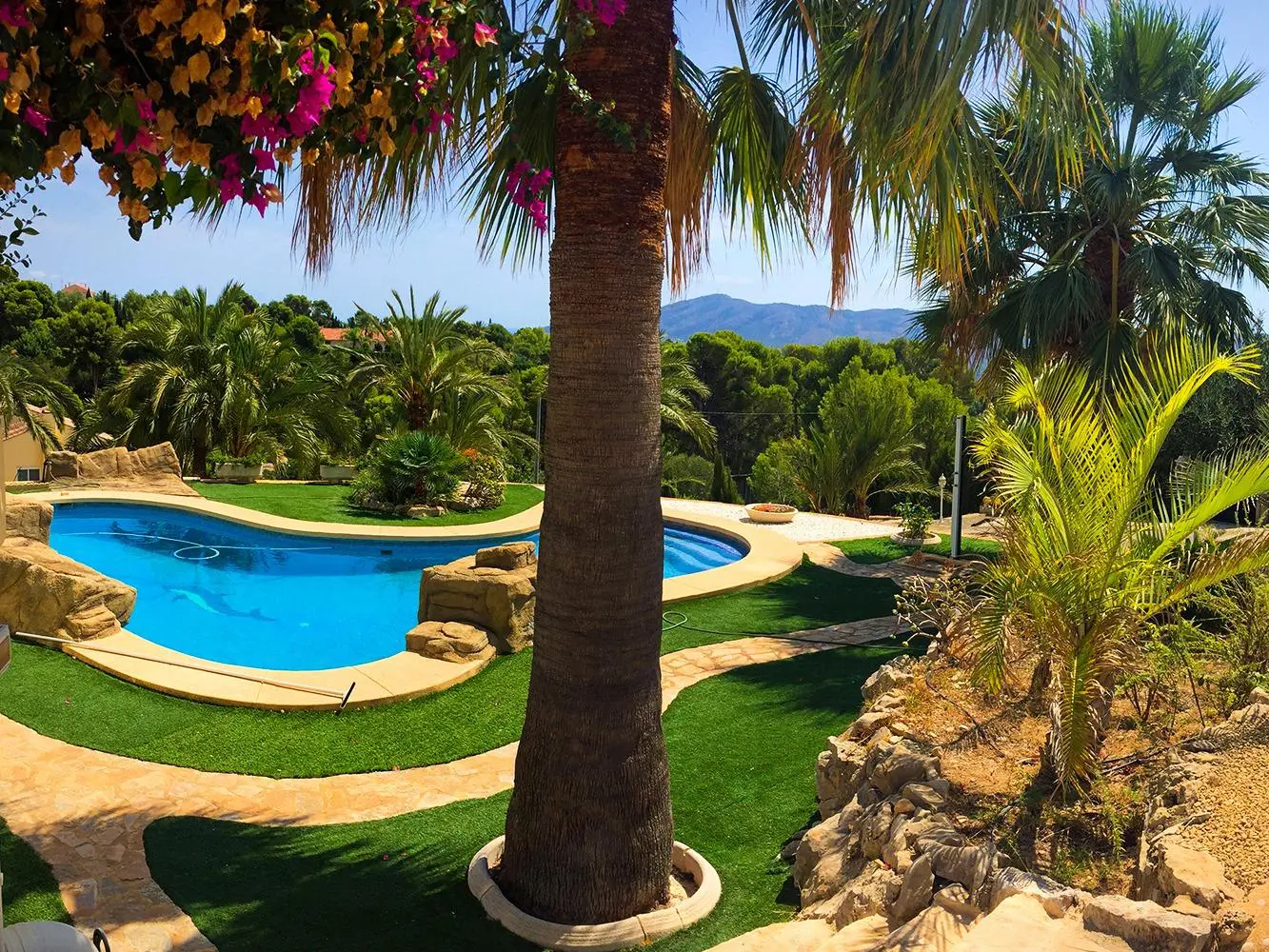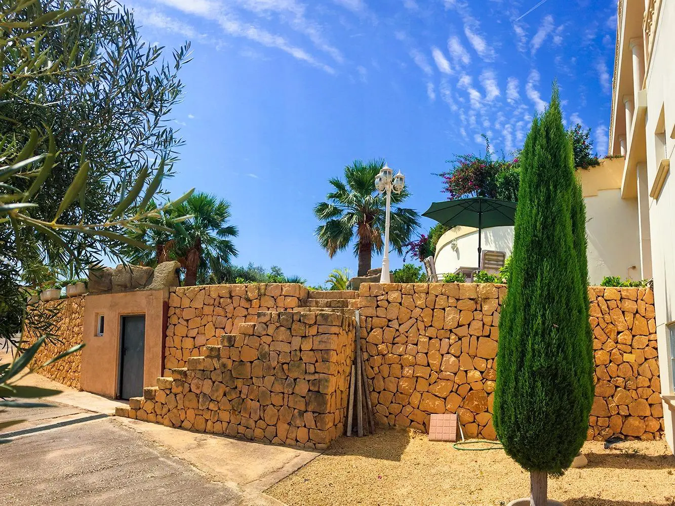 Imagine a lush garden adorned with palm trees and citrus plants. The design merges the charms of Provence with Arabic heritage. The outdoor areas are perfect for enjoying the sunshine or hosting gatherings.