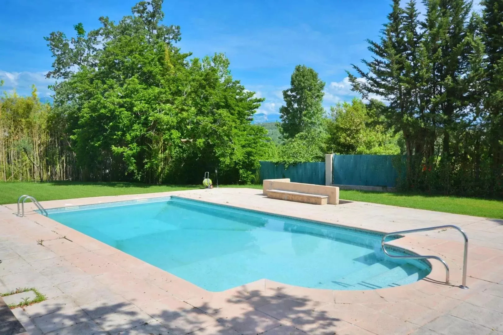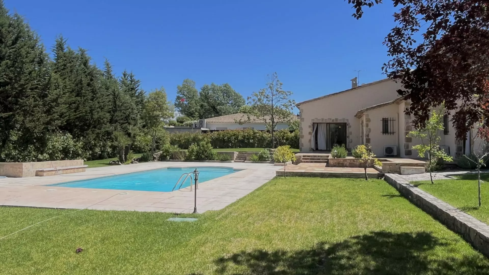 L’extérieur finira par vous séduire avec une grande piscine, un espace barbecue, un terrain plat et ensoleillé, pour profiter pleinement toute la journée.