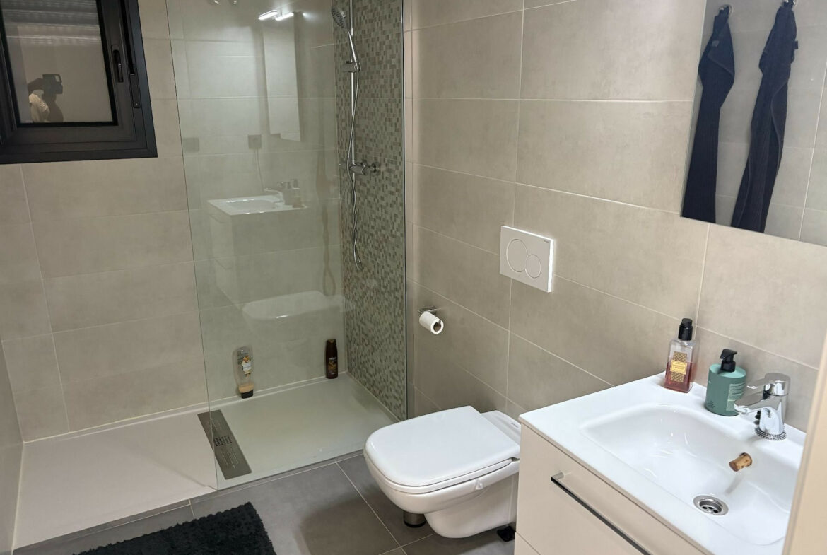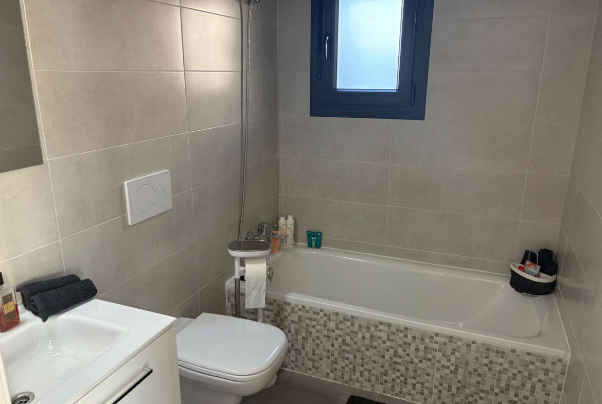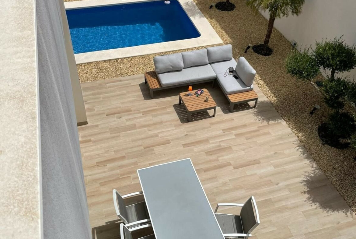 This villa spans an internal area of 70 m2, providing a well-thought-out layout. You will find two bedrooms and two bathrooms designed to accommodate families or guests comfortably. One of the benefits of this property is that all rooms are situated on one level, ensuring easy access without any stairs.