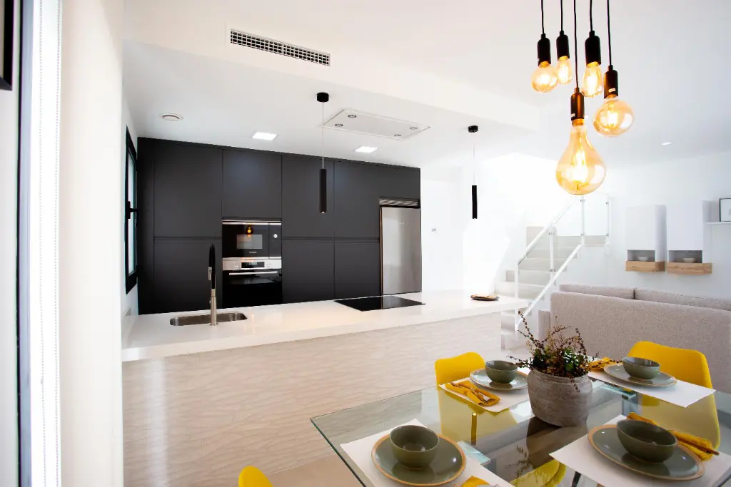 New villas for sale close to the beach in AguilasThe residential complex is composed of 21 exclusive villas of 3 bedrooms combining modern design, quality and functionality. A villa consists of one large living room, a furnished kitchen, 2 bathrooms and basement. Each villa has its independent plot with terrace, garden, pool and parking space. In each building, the developer company performed pre-installation of air conditioning systems and pool heat pump.A few minutes away are commercial areas with a supermarket, restaurants and all the services offered by the towns of Los Geraneos and Aguilas.The area has a hot desert-like climate right through the year and an average temperature of 22º with mild temperatures in winter and very hot temperatures in the summer.
