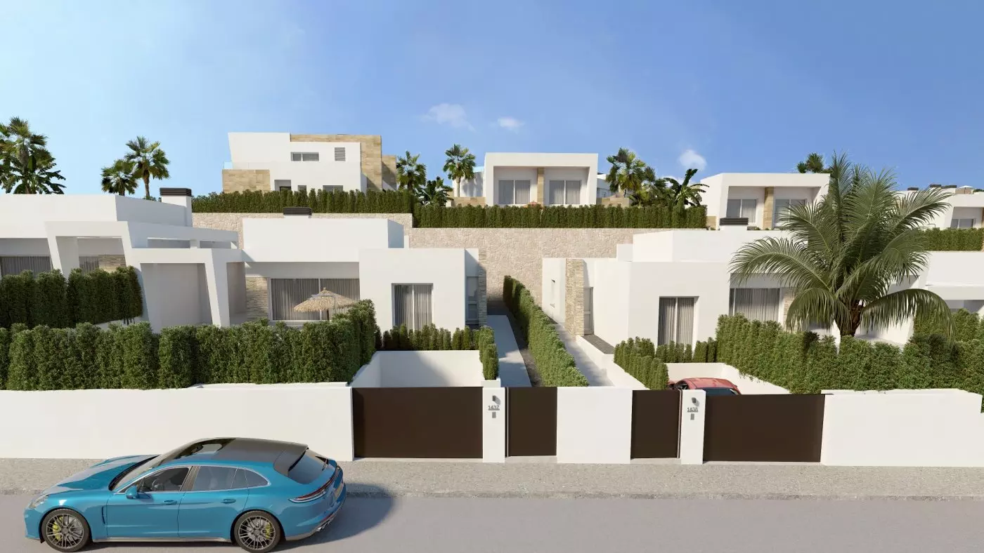 Discover a new residential complex in Algorfa, offering a selection of independent and semi-detached villas, as well as apartments. This development is situated in the La Finca Golf course area, providing access to a communal pool and landscaped green spaces.