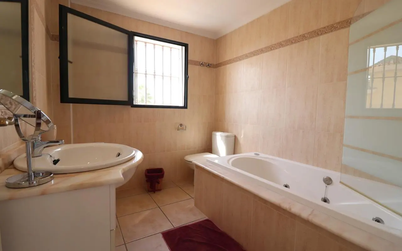 The villa features five bedrooms, all equipped with fitted wardrobes, adding practical storage space. One notable aspect is the master bedroom, which includes an en-suite bathroom, providing privacy and ease for its occupants. The air conditioning installed in all bedrooms allows for a comfortable environment year-round, catering to a variety of climates.