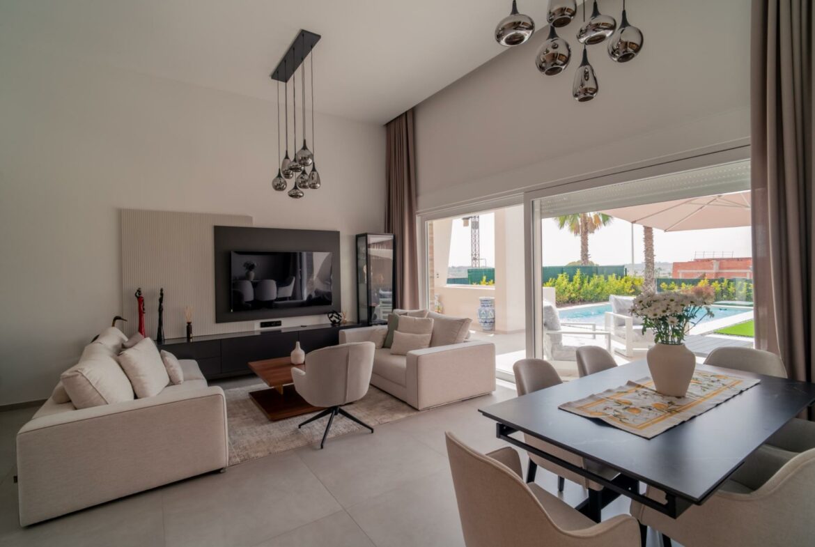 Welcome to this luxury villa located in the renowned La Finca Resort, situated in the Southern Costa Blanca. This exclusive area is surrounded by natural beauty and features a prestigious golf course, offering a serene lifestyle for residents. The property is part of the new Mar Egeo Residential community, designed to fit seamlessly into this tranquil environment while offering modern living features.