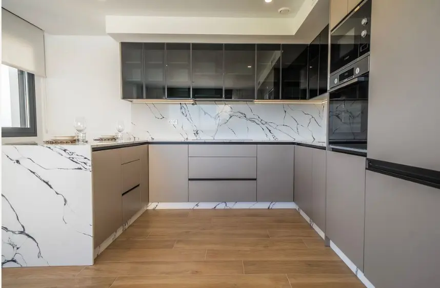 These villas cover two levels and include three bedrooms and four bathrooms. The layout provides ample space for both daily living and hosting guests. A bright living room allows for natural light to flood in, enhancing the overall atmosphere. The kitchen is functional, designed for meal preparations with ease.