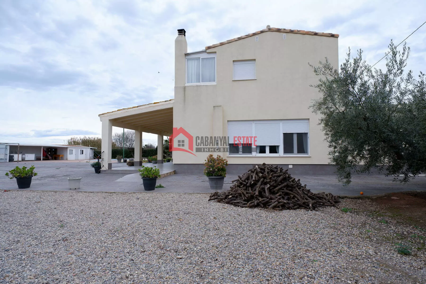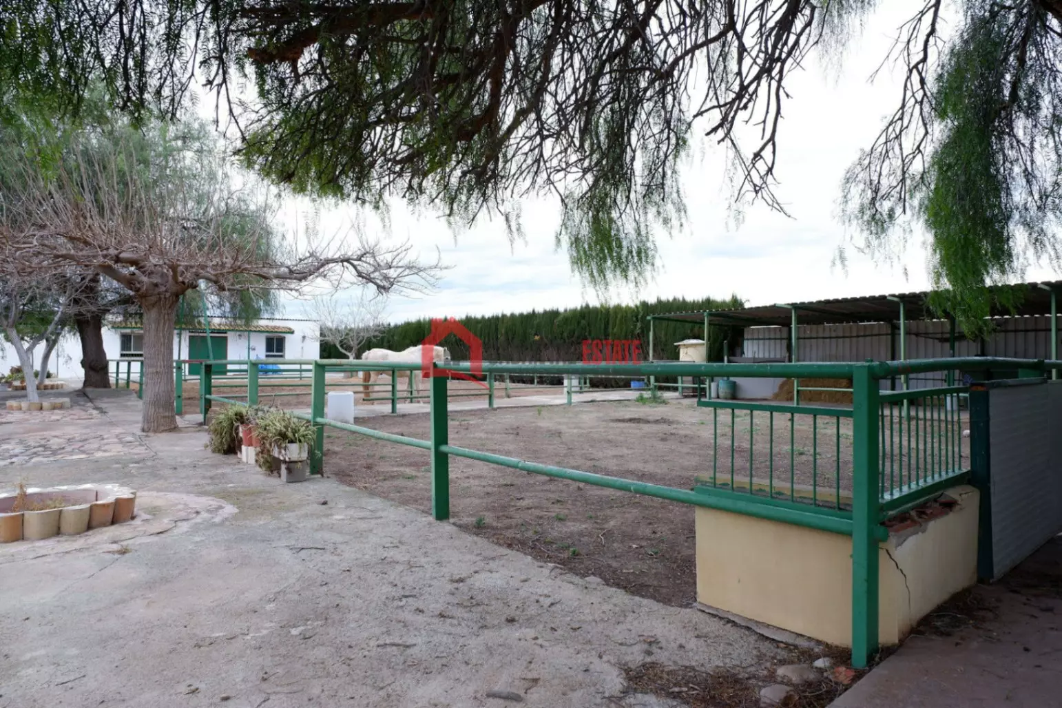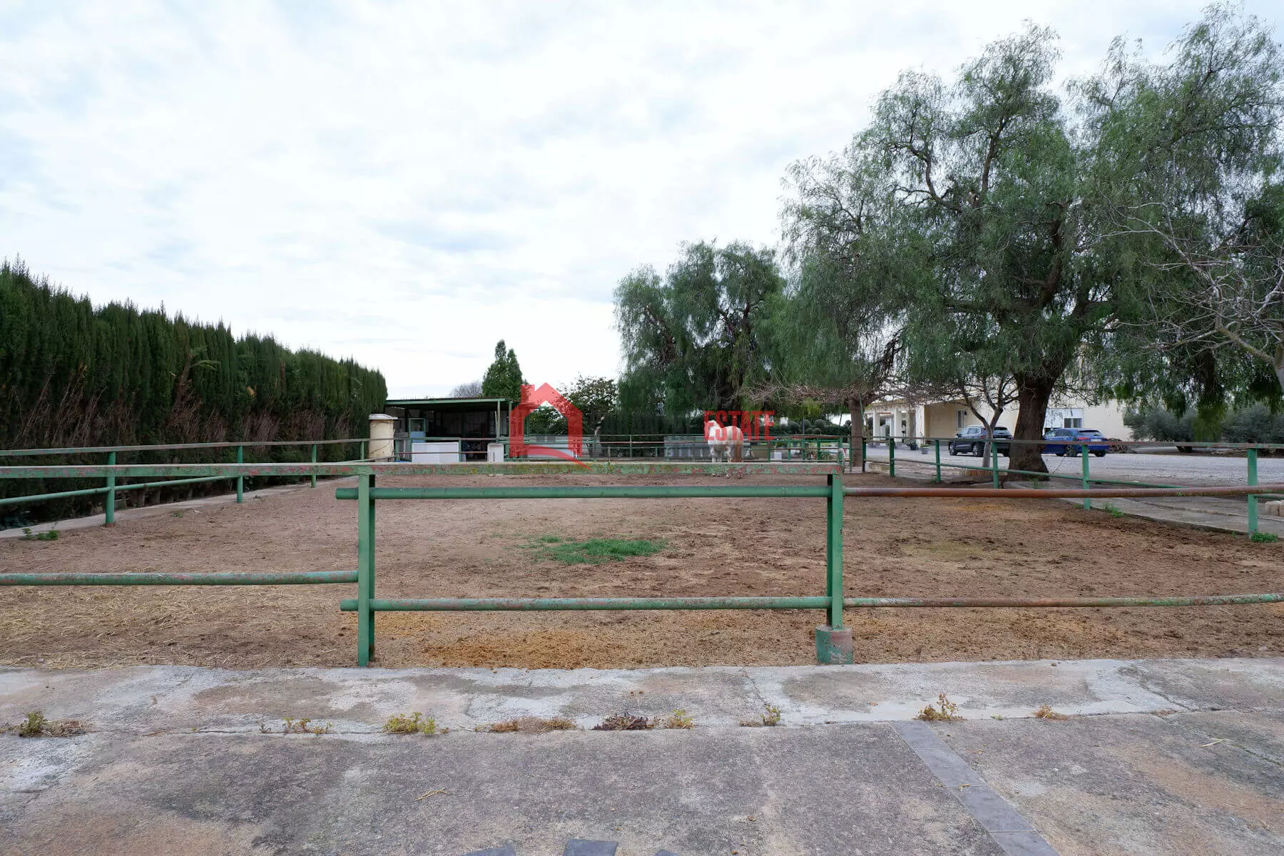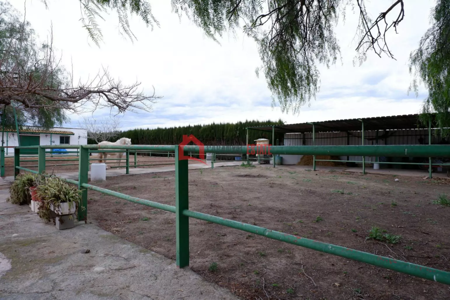 The villa includes a separate guest house that features its own kitchen and fireplace, providing a degree of privacy for visitors. The expansive outdoor area comprises a large swimming pool, an outdoor kitchen with barbecue facilities, covered parking, storage spaces, horse stables, and multiple paddocks. The property also has orange trees, enabling residents to pick fresh oranges on-site.
