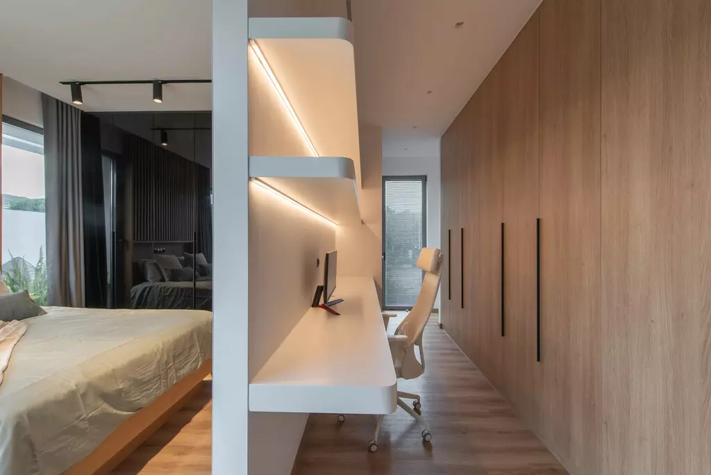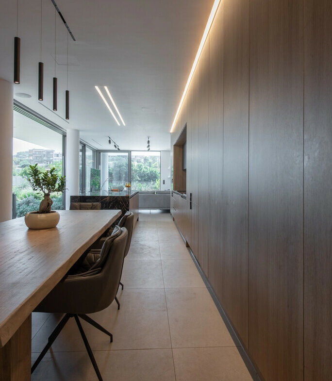 The villa includes a living room that connects to a kitchen area, equipped for daily activities. There are also 3 shower WCs, adding convenience for residents and guests alike.