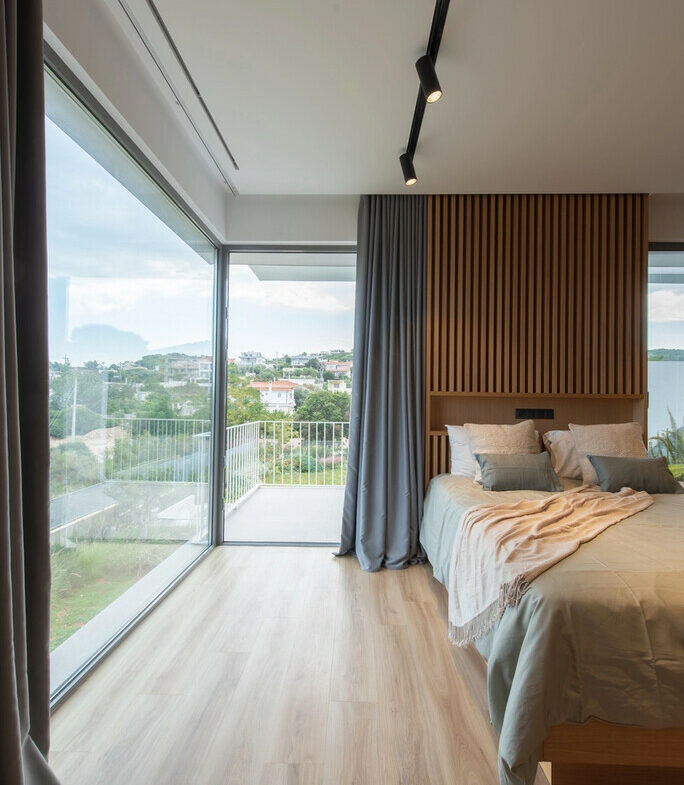Residents can enjoy expansive views of the sea and surrounding forest from the windows. For outdoor entertaining or relaxation, there is a dedicated barbecue area. The property also includes a swimming pool for private use, enhancing leisure options.