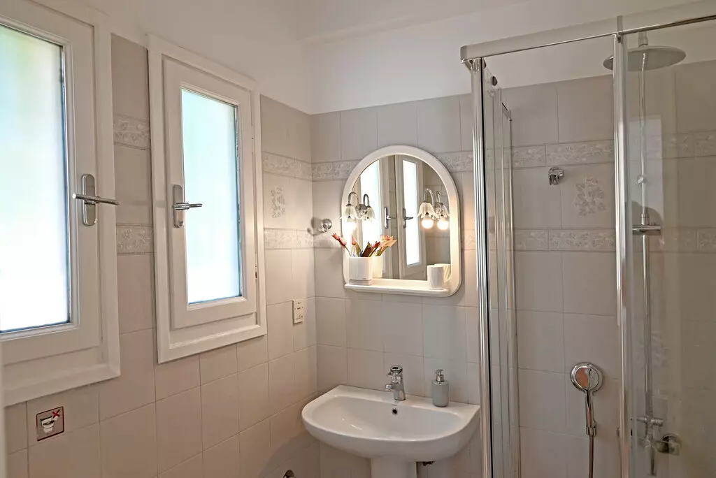 Moving to the first floor, you’ll find four additional bedrooms and two more bathrooms. This configuration is ideal for families or those who enjoy hosting guests. A highlight of this villa is the sea view visible from the windows, which can enhance the living experience.