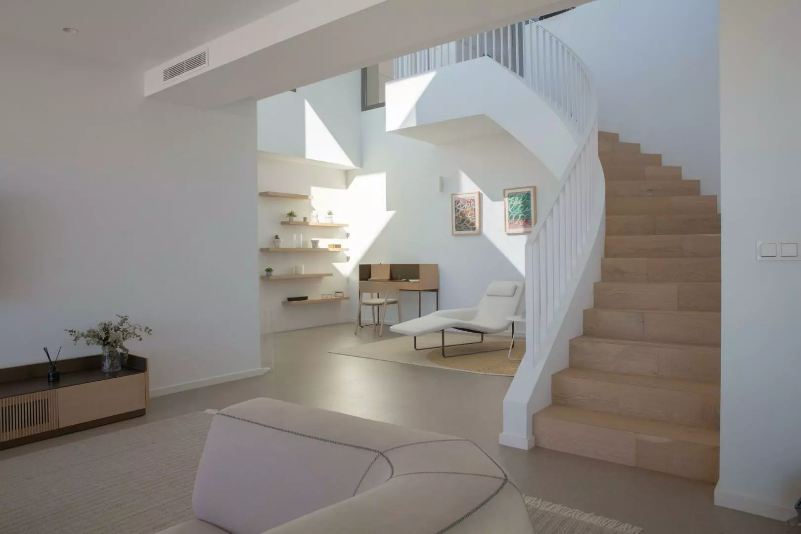 This villa is constructed on a 1168m² plot, positioned to face southwest, allowing for stunning sunset views each evening. The intelligent design promotes a practical layout, optimizing sweeping vistas of the Mediterranean from various viewpoints within the home.