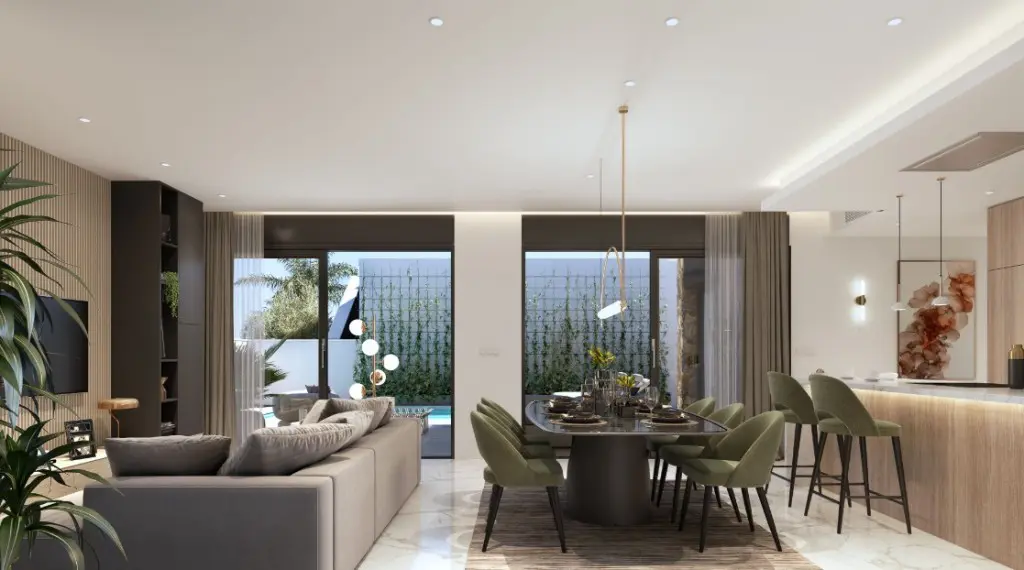 These villas are designed with functionality in mind. Each villa features three bedrooms and two bathrooms. The layout typically includes a living room, kitchen, and terrace, making it practical for various lifestyles. One notable element is the private swimming pool, allowing residents to enjoy leisure time right at home. There is also a solarium and landscaped gardens, offering outdoor space that can accommodate personal preferences.