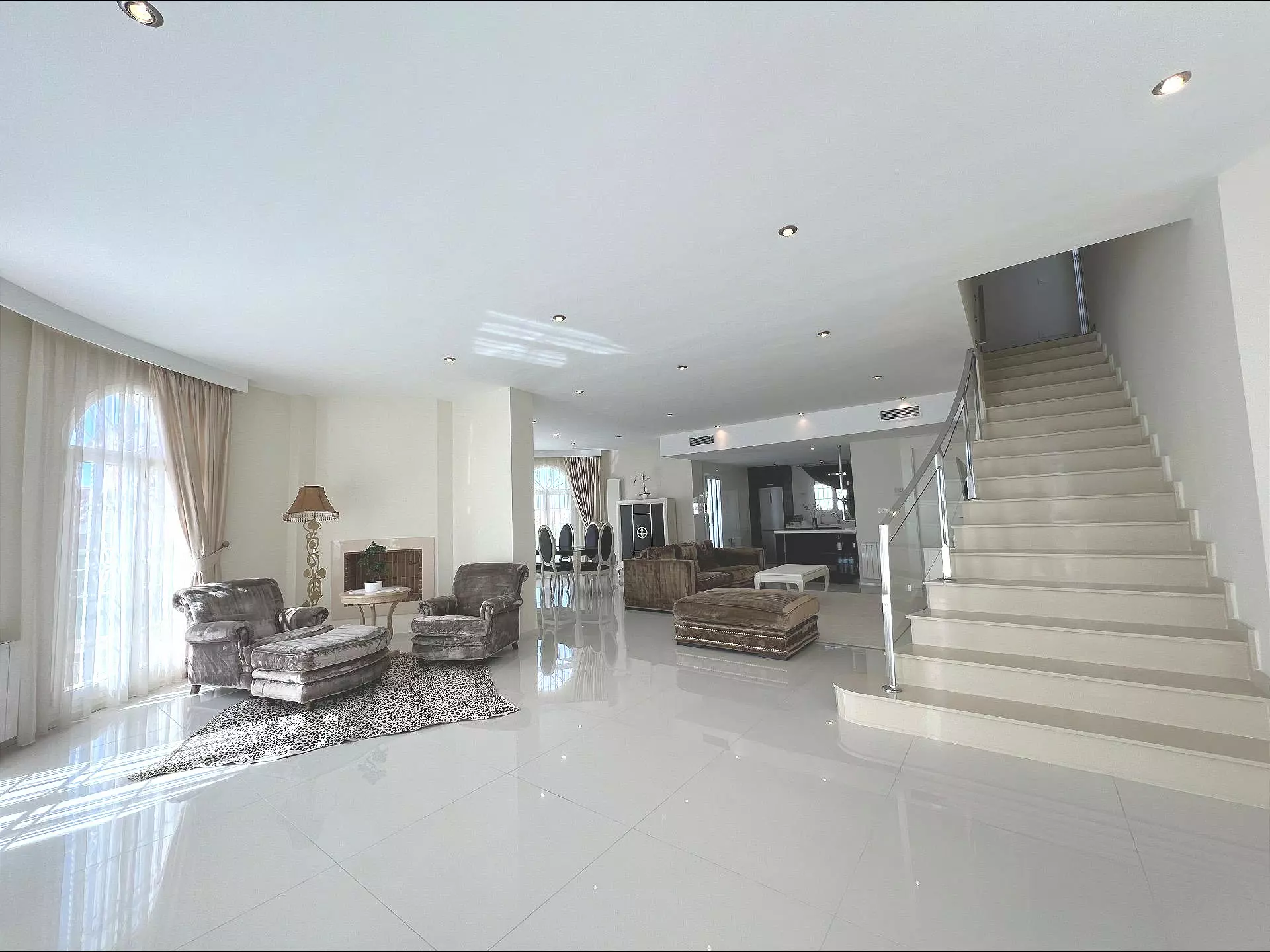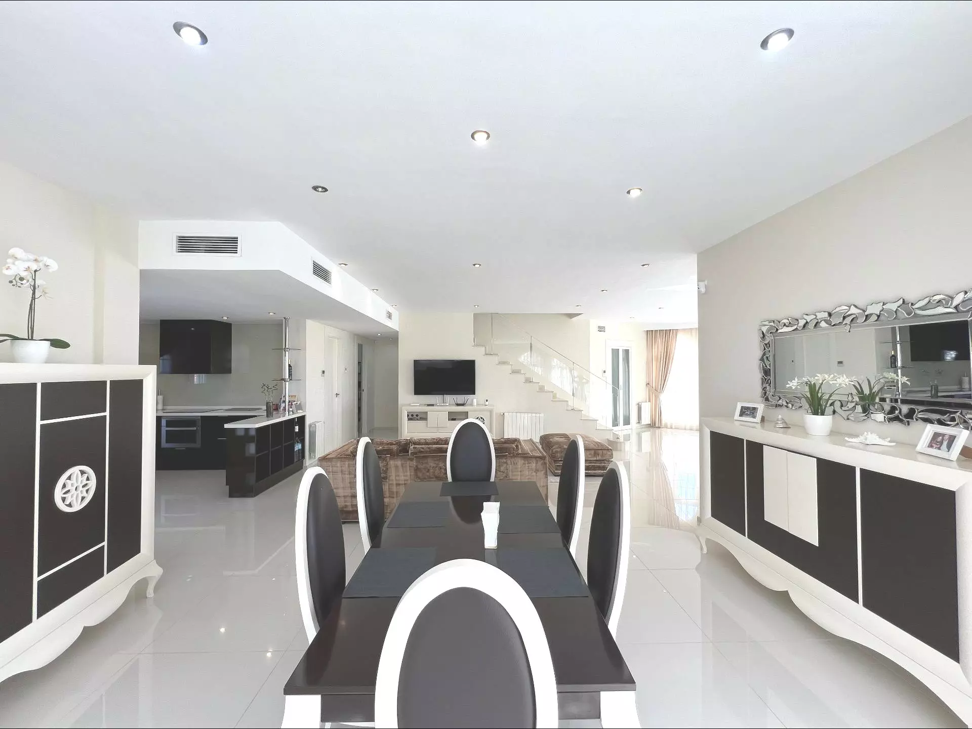 This villa features 5 bedrooms and 4 bathrooms, making it suitable for families or those who require extra space for guests. The open-plan kitchen is designed to facilitate everyday cooking and entertaining. It allows for smooth transitions between meal prep and social activities.