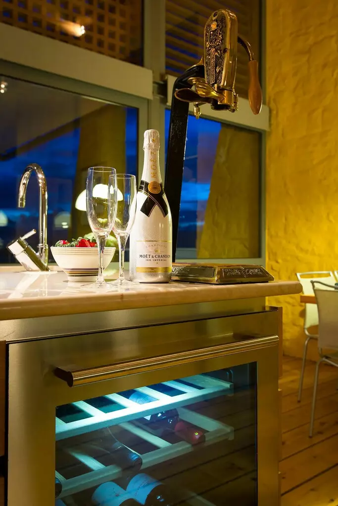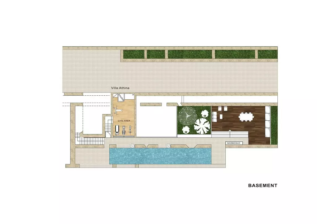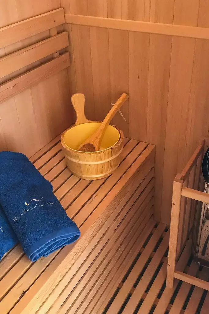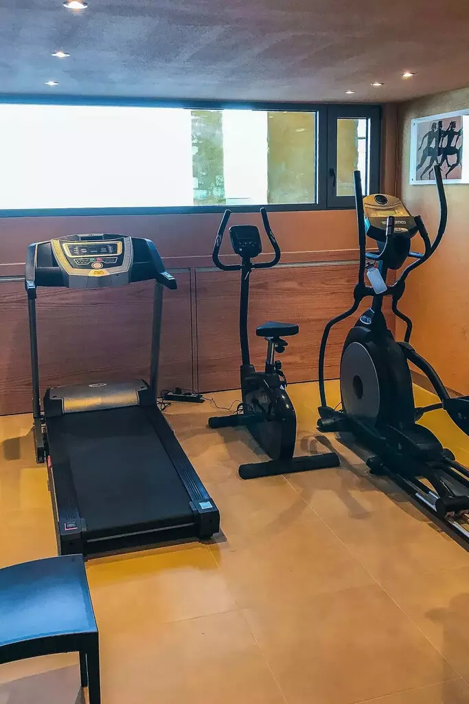 The layout of the ground floor includes two bedrooms, a living room, a kitchen, and a dining room. Additionally, there are two bathrooms, a storeroom, an office, and a gym. This arrangement allows for a variety of uses, from family living to remote work. There’s also a sauna and a hot tub, providing options for relaxation without leaving home.