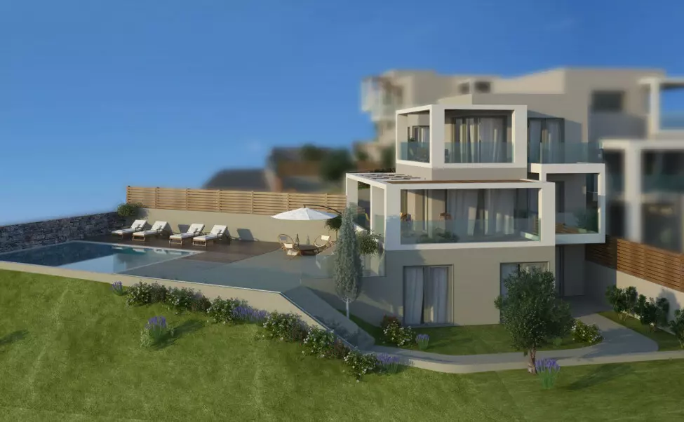 This 3-storey villa in Crete covers an area of 156 square meters. It is designed to offer functional living spaces across three different levels, catering to various needs and preferences.