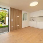 On the first floor, there is another bedroom along with a living room and a kitchen, offering a separate living space if needed. This level also includes one bathroom and an additional WC, contributing to the overall functionality of the home.