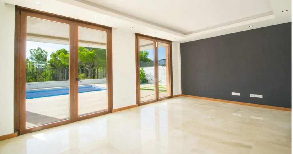 This new build villa incorporates a range of modern features. The outdoor space includes a terrace and a private garden, complete with a swimming pool. High-quality materials have been utilized throughout the construction, ensuring durability and longevity. For example, the windows are double-glazed aluminum, designed for energy efficiency and sound insulation.