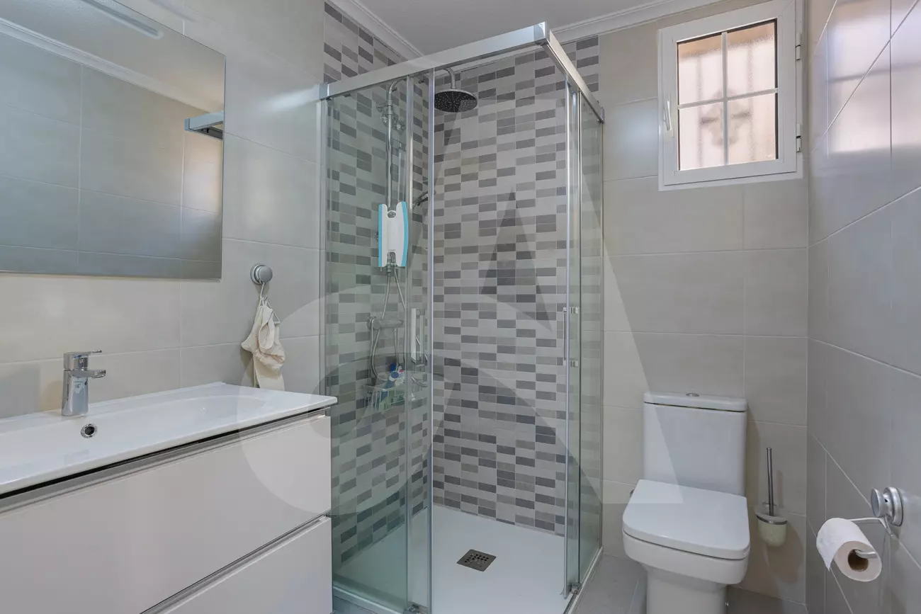 You enter the villa through a private car park that leads to a terrace, offering an opportunity to enjoy outdoor living in Spain. This area is designed for easy access and provides a welcoming first impression.