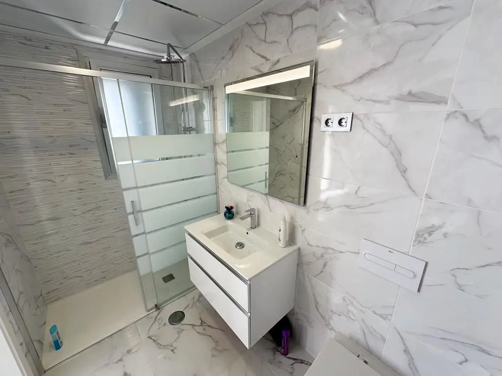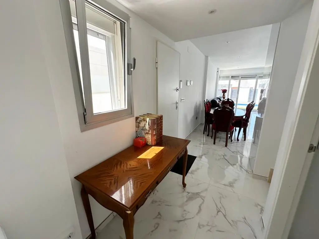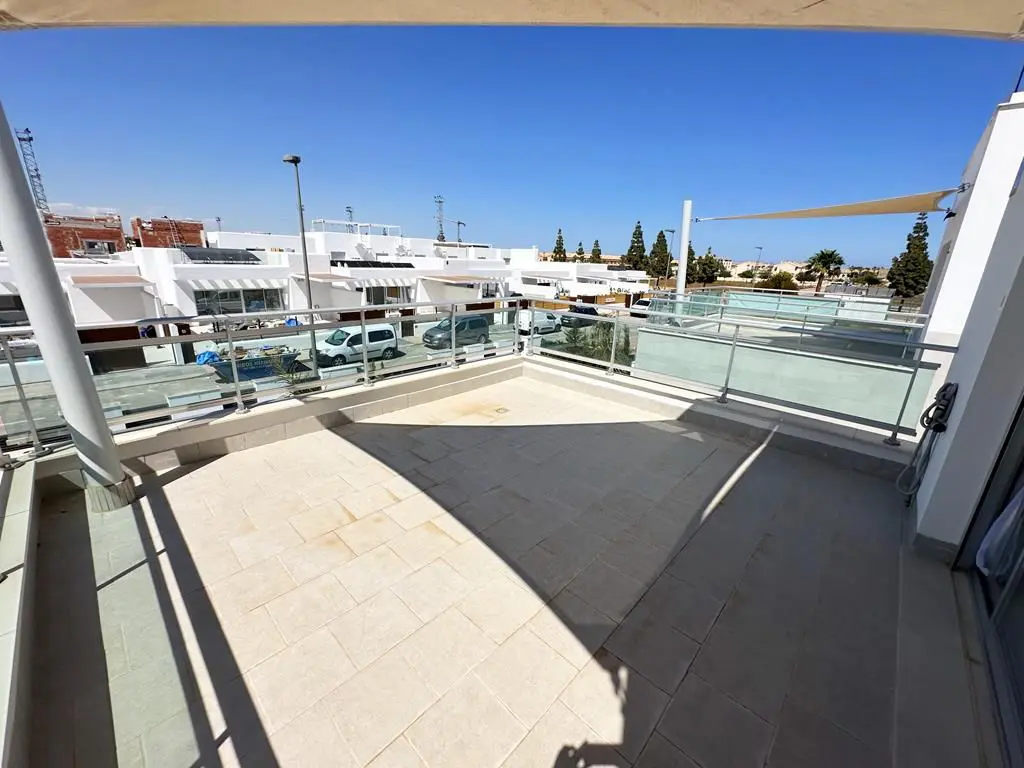 This is a gorgeous detached Norai style villa located next to Serena Golf, Los Alcazares. This well presented villa has it’s own private pool, situated on a large plot with large garden and two solariums. The garage has been remodelled to create a fourth bedroom or office. It is situated close to Serena Golf and walking distance to Los Alcazares old town and you have great views of the Mar Menor from the terrace. It has hot and cold air-con throughout, tv intercom system and off road parking for a couple of cars. The villa is very secure, entered by pin controlled gate and car entry. You enter into the sunny tiled garden with private pool, this space is huge. The open plan kitchen, diner and lounge is very spacious with modern kitchen. The hallway leads to a downstairs cloakroom, and the downstairs double bedroom with ensuite bathroom. Patio doors lead to a private rear terrace with outdoor kitchen / utility area. The garage has been converted to a usable space perfect for a fourth bedroom or an office where you are completely separate from the house. Stairs lead to two further double bedrooms and separate family bathroom. Both bedrooms have built in wardrobes and their own solariums. All windows have electric shutters. This is a gorgeous villa in a prime location. Contact us to arrange a tour of the resort and this wonderful villa.