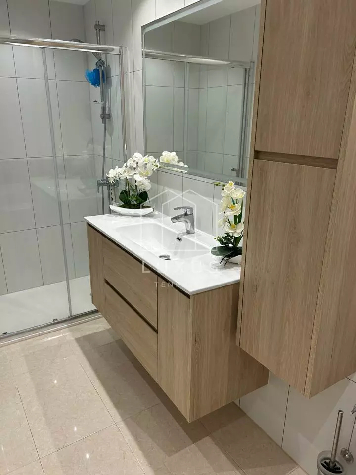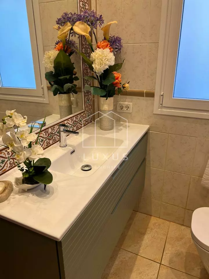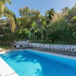 The villa encompasses four bedrooms, including three double bedrooms and one single bedroom, all equipped with built-in wardrobes for organized storage. There are also three en-suite bathrooms, designed for convenience, and a walk-in closet located in the master bedroom. The custom-designed kitchen is outfitted with quartz countertops and high-end Miele appliances, making it suitable for cooking enthusiasts.