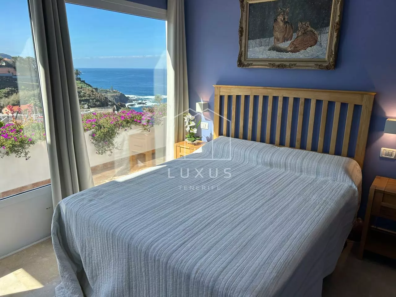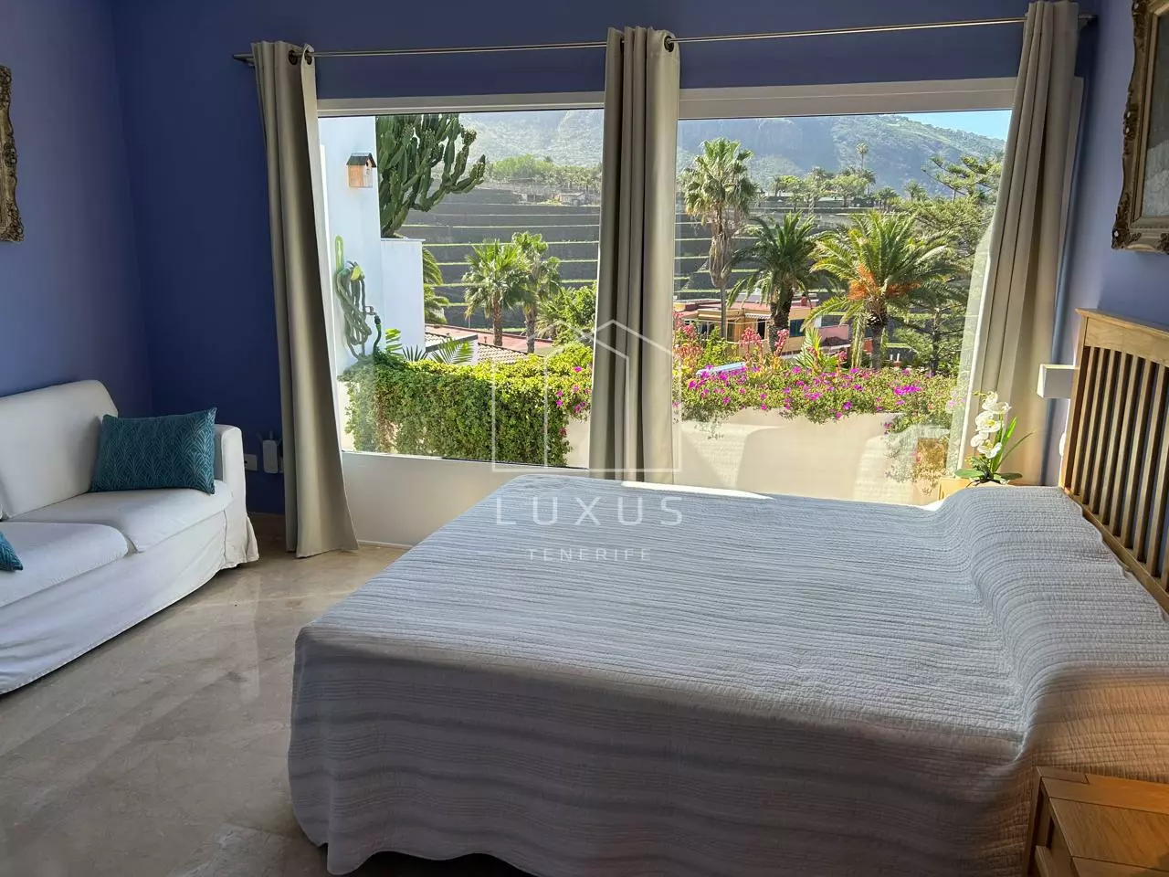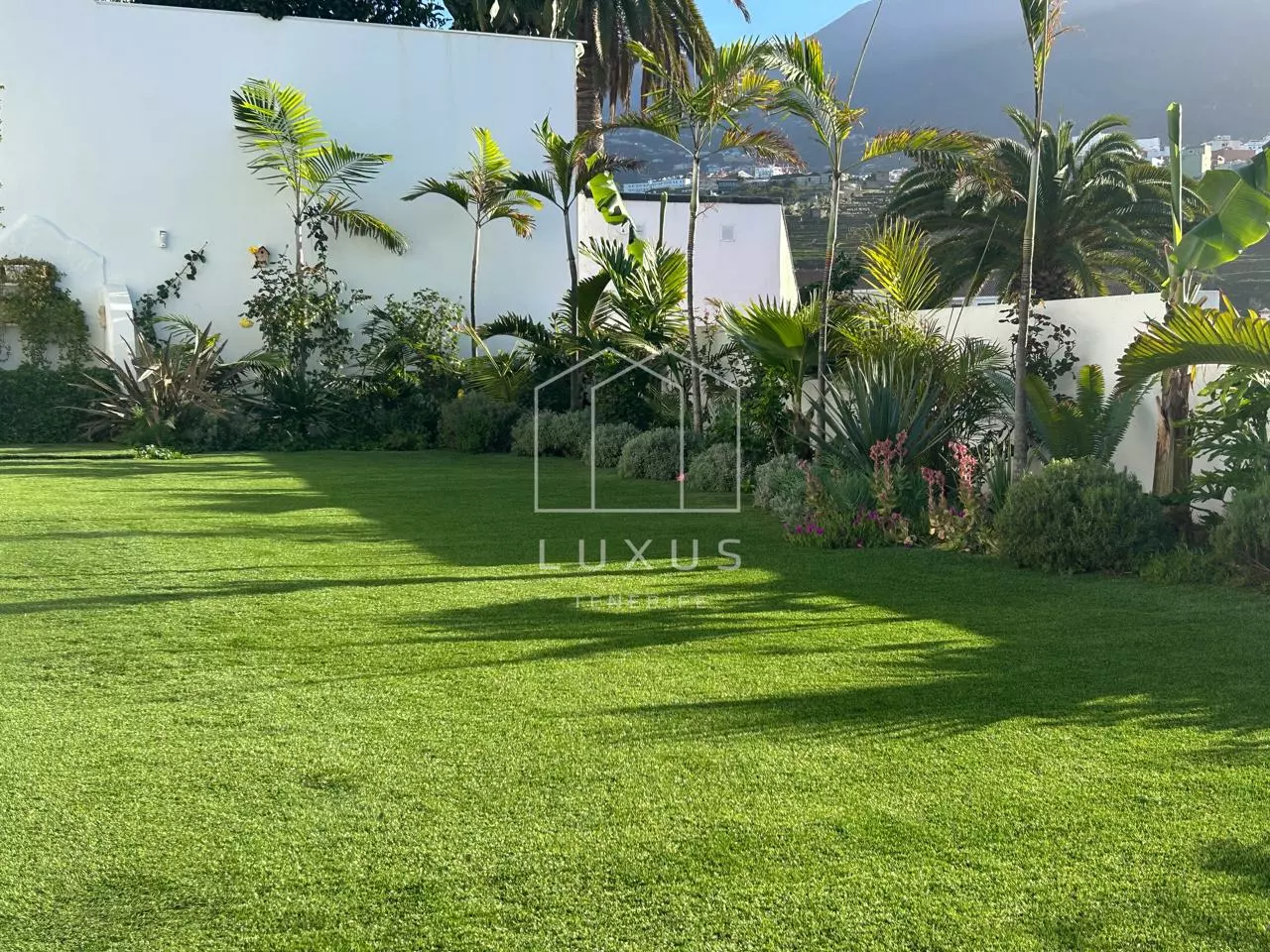 This independent villa, situated in a prime location close to Puerto de la Cruz, provides panoramic views of the sea and mountains. The property boasts a well-thought-out layout, featuring an entrance hall that leads to a spacious living and dining room.