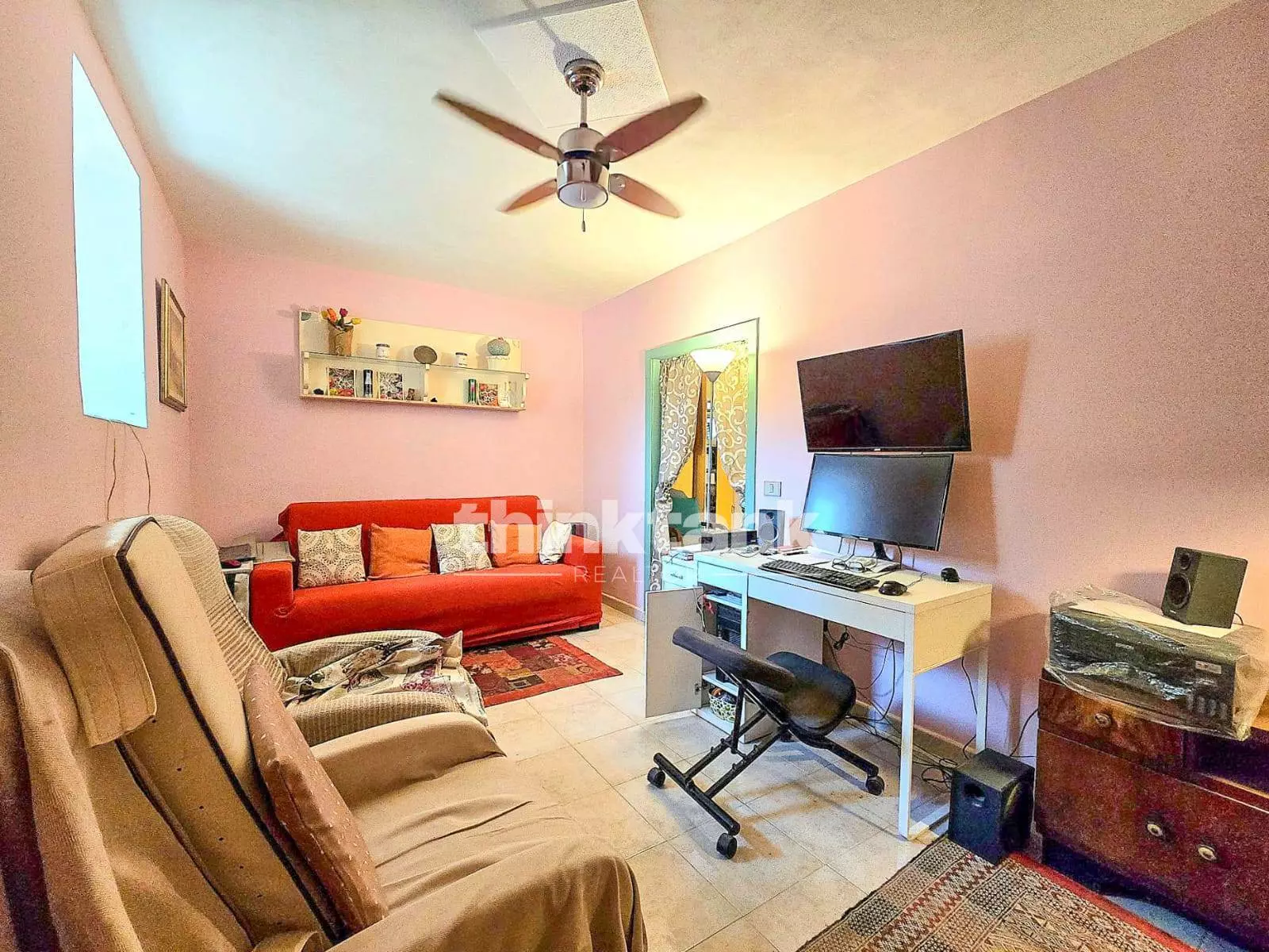 Cellar of approximately 25 m2 Kitchen Living room Two bathrooms, one with an anteroom Two single bedrooms, easily unified to create a large double bedroom Small storage room