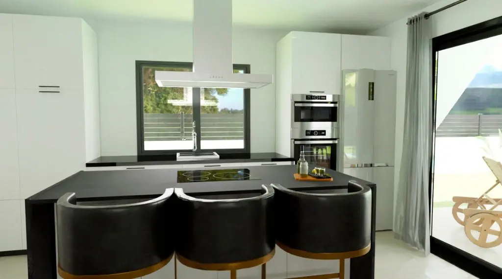 The villas stand out with their contemporary design and functionality. Each unit features two levels and offers three bedrooms which provide ample space for families or guests. The overall layout includes a large living room, a kitchen, and two bathrooms, designed to accommodate daily activities efficiently.