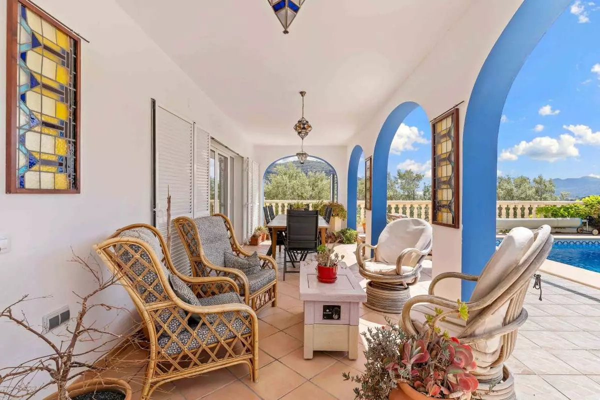 Explore this distinctive home located in the heart of Murla, offering remarkable privacy and stunning panoramic views of the lush valley below. With a total area of 223 m², this well-maintained residence sits on a generous plot of 10,924 m², which includes a vineyard, numerous olive trees, and fruit trees, all situated in an elevated position for excellent vistas.