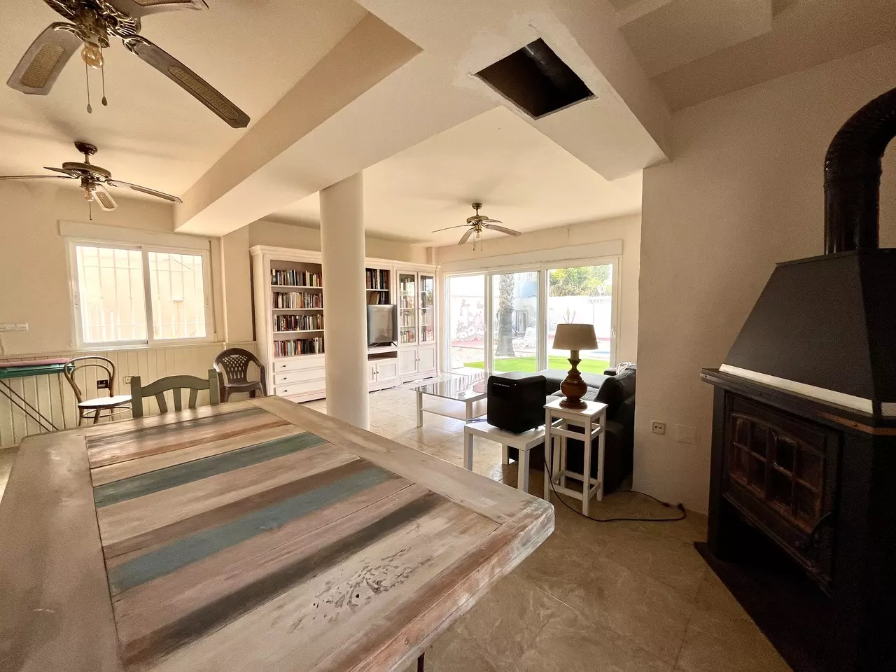 The villa features secure electric gates that open onto a large private driveway, providing ample parking space. Inside, the property boasts an expansive and contemporary design with 5 bedrooms and 3 bathrooms, offering plenty of room for both family living and entertaining.