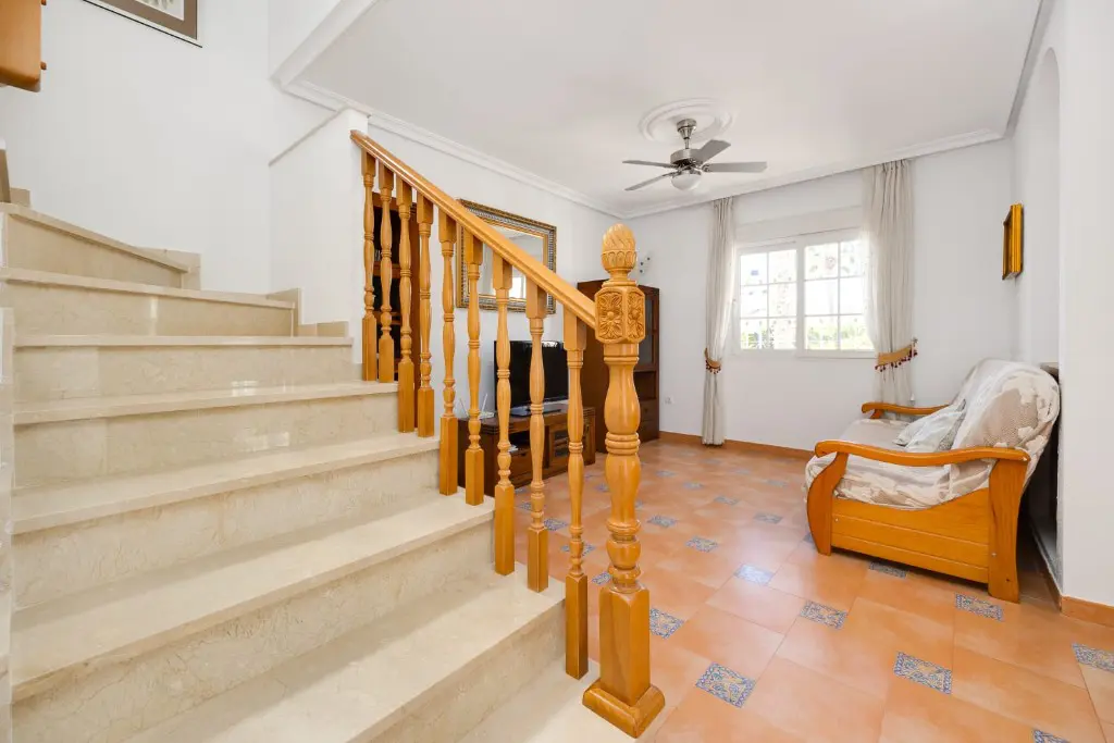 This house is situated in a quiet neighborhood yet remains close to essential amenities. A key highlight is that it is only 700 meters away from the renowned La Zenia Boulevard shopping center. For golf enthusiasts, a golf club is located a mere 2 kilometers from the property, providing ample opportunity for leisure activities. The sandy beaches of Orihuela Costa, recognized for their cleanliness with a Blue Flag award, are also within a short distance of 2 kilometers.