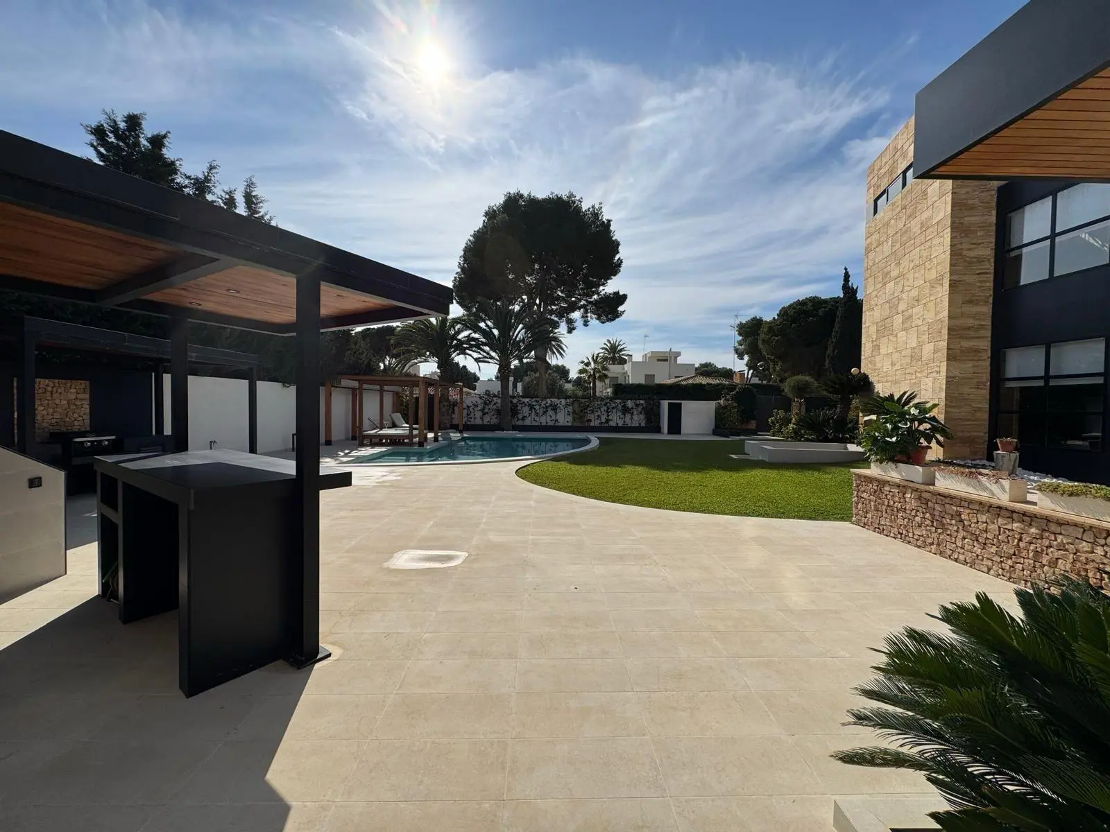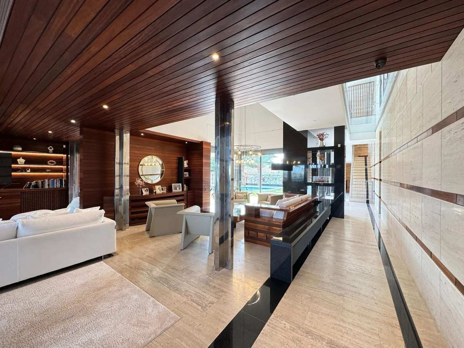 This villa features seven bedrooms and eight bathrooms, accommodating large families or entertaining guests. With parking spaces for seven vehicles, it offers convenience for owners and visitors alike. This layout can comfortably support a variety of lifestyles.