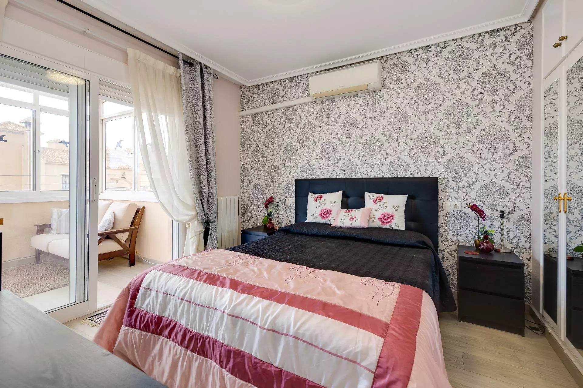 Outside, you’ll find a low-maintenance garden that requires minimal upkeep. The property boasts sunny terraces, perfect for outdoor dining or lounging. Additionally, residents have access to a well-kept communal swimming pool, enhancing the outdoor lifestyle options.