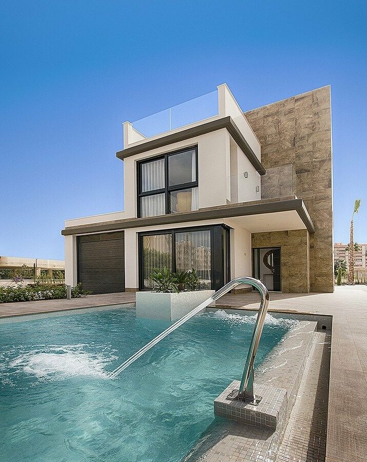 Are you looking for a vacation property near the sea? This new villa in Orihuela Costa could be a great option. With 4 bedrooms and 2 bathrooms, it features a private pool and garden, along with various luxury extras tailored to personal preferences. The layout of the property blends well with the natural surroundings, creating a quiet environment.